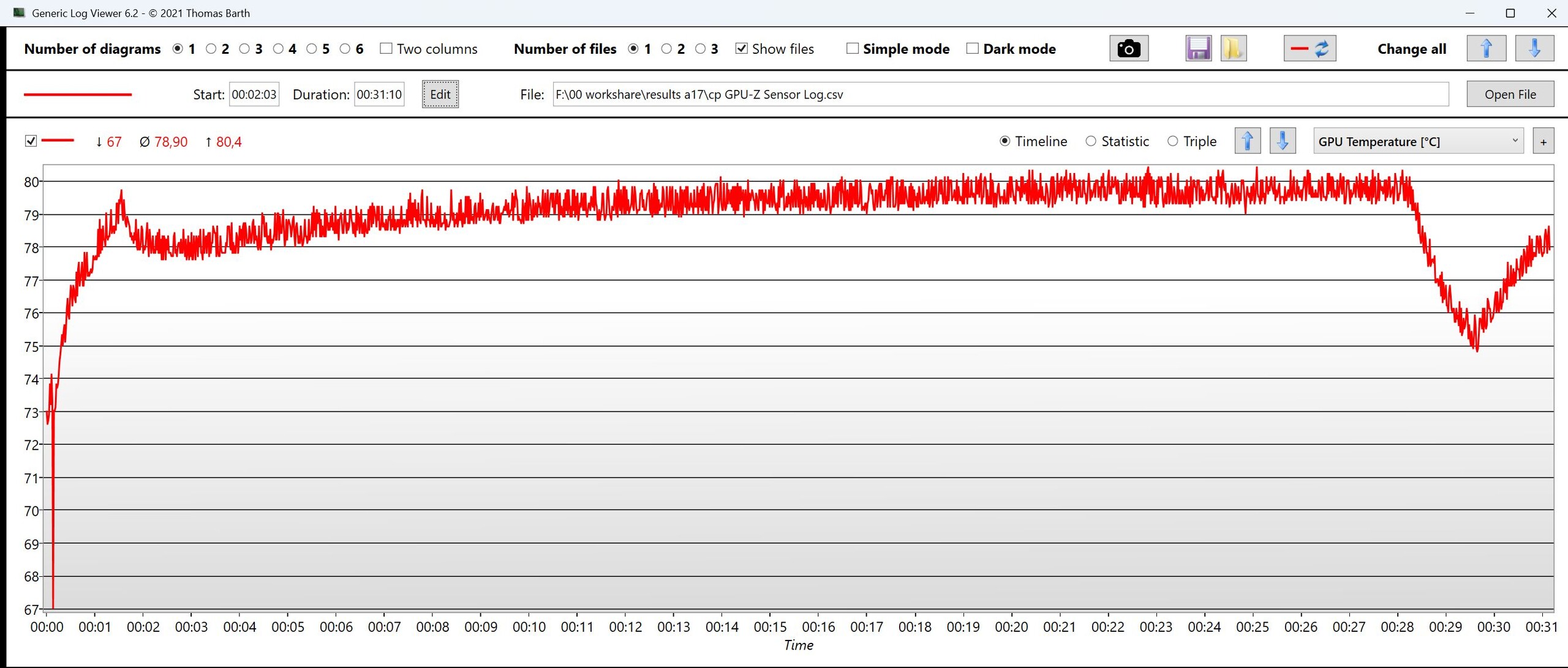 (+) 3: The average temperature for the upper side is 30.7 °C / 87 F, compared to the average of 33.9 °C / 93 F for the class Gaming.