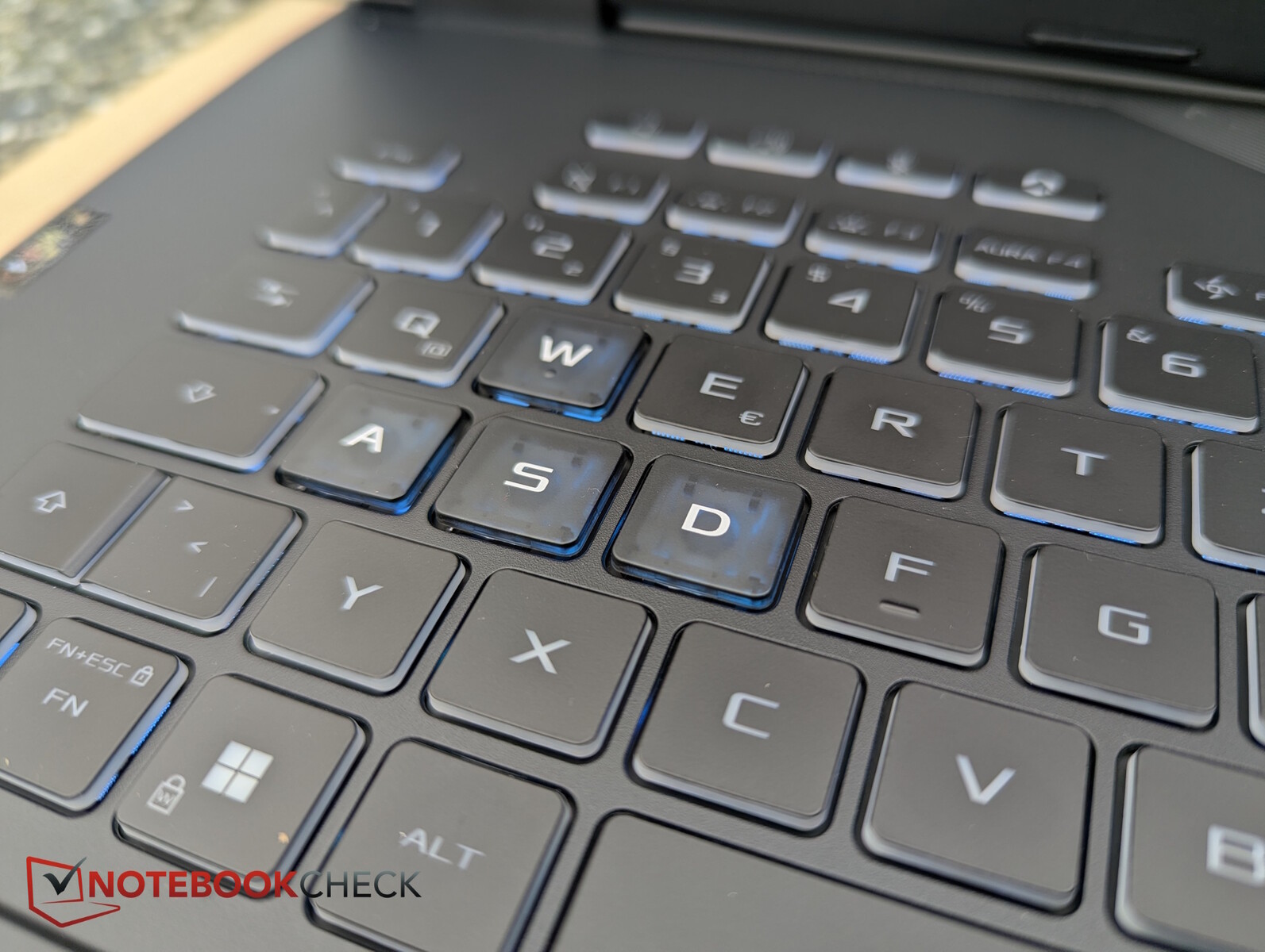 A pesar de su generoso tamaño, las teclas de silencio están en el lado pequeño. Al menos las teclas de flecha no son de media altura, aunque están ligeramente apretadas. La colocación de la tecla de borrado, de uso frecuente, resulta incómoda, mientras que las cuatro teclas de función dedicadas son un toque agradable. El recorrido de las teclas es muy superficial, pero la respuesta es aceptable.