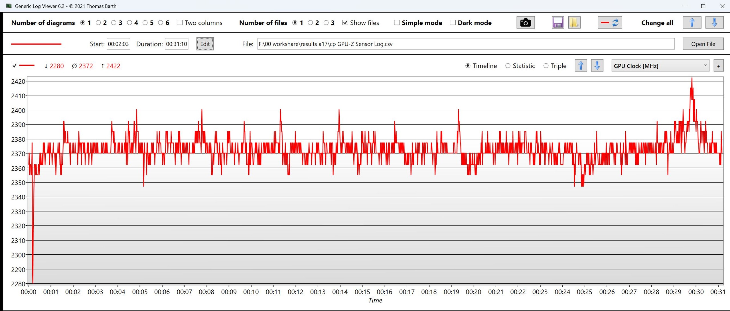 | Reloj de la CPU (GHz) | Reloj de la GPU (MHz) | Temperatura media dela CPU (°C) | Temperatura media de la GPU (°C) | |