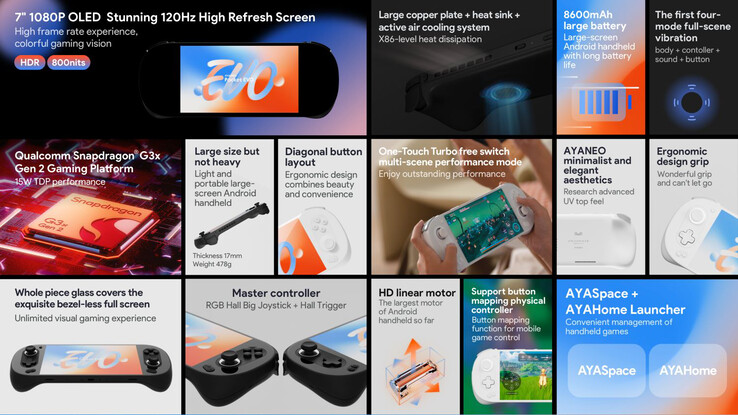 Además, el Pocket EVO incluye una batería de 8.600 mAh y controles de efecto Hall, todo ello dentro de una carcasa que pesa 478 g y se estrecha hasta los 17 mm en su punto más delgado. Actualmente, AYANEO estima que comenzará a entregar los pedidos del Pocket EVO en noviembre de 2024 en todo el mundo. Consulte las imágenes que aparecen a continuación y la campaña Indiegogo de AYANEO https://www.indiegogo.com/projects/pocket-evo-world-s-first-7-oled-android-handheld para más detalles.