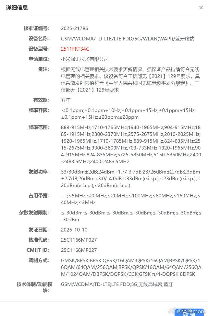 El Redmi Turbo 5 ya ha sido certificado en China antes de su lanzamiento, siendo visto en el sitio web de 3C con el número de modelo "2511FRT34C". Según han revelado varios filtradores, parece que Xiaomi está preparada para lanzar el Redmi Turbo 5 en noviembre. Comparativamente, el Redmi Turbo 3 debutó en abril, mientras que el Redmi Turbo 4 se lanzó en enero. Tras el debut del Turbo 5 en noviembre en China, se espera que sea rebautizado como el Poco X8 Pro para el mercado global, probablemente en enero.