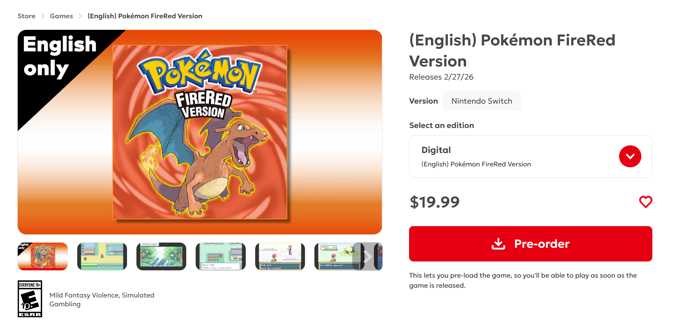 Pokémon Rojo Fuego y Pokémon HojaVerde ya están disponibles para reserva a través de la Nintendo eShop. A partir del viernes 27 de febrero, los dos clásicos podrán jugarse en la Nintendo Switch y la Nintendo Switch II.