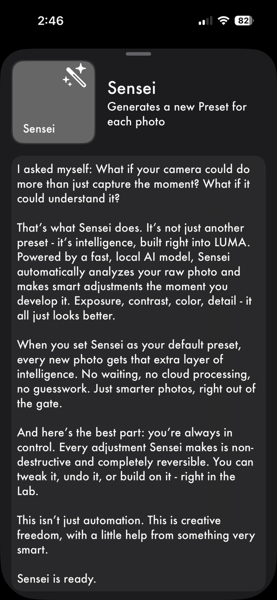 Además, ya puede compartir ajustes preestablecidos a través de la aplicación Archivos de iOS y, aunque se habla de un futuro mercado de ajustes preestablecidos, por ahora, los usuarios avanzados pueden redirigir sus estilos entre los flujos de trabajo del dispositivo y del ordenador de sobremesa.