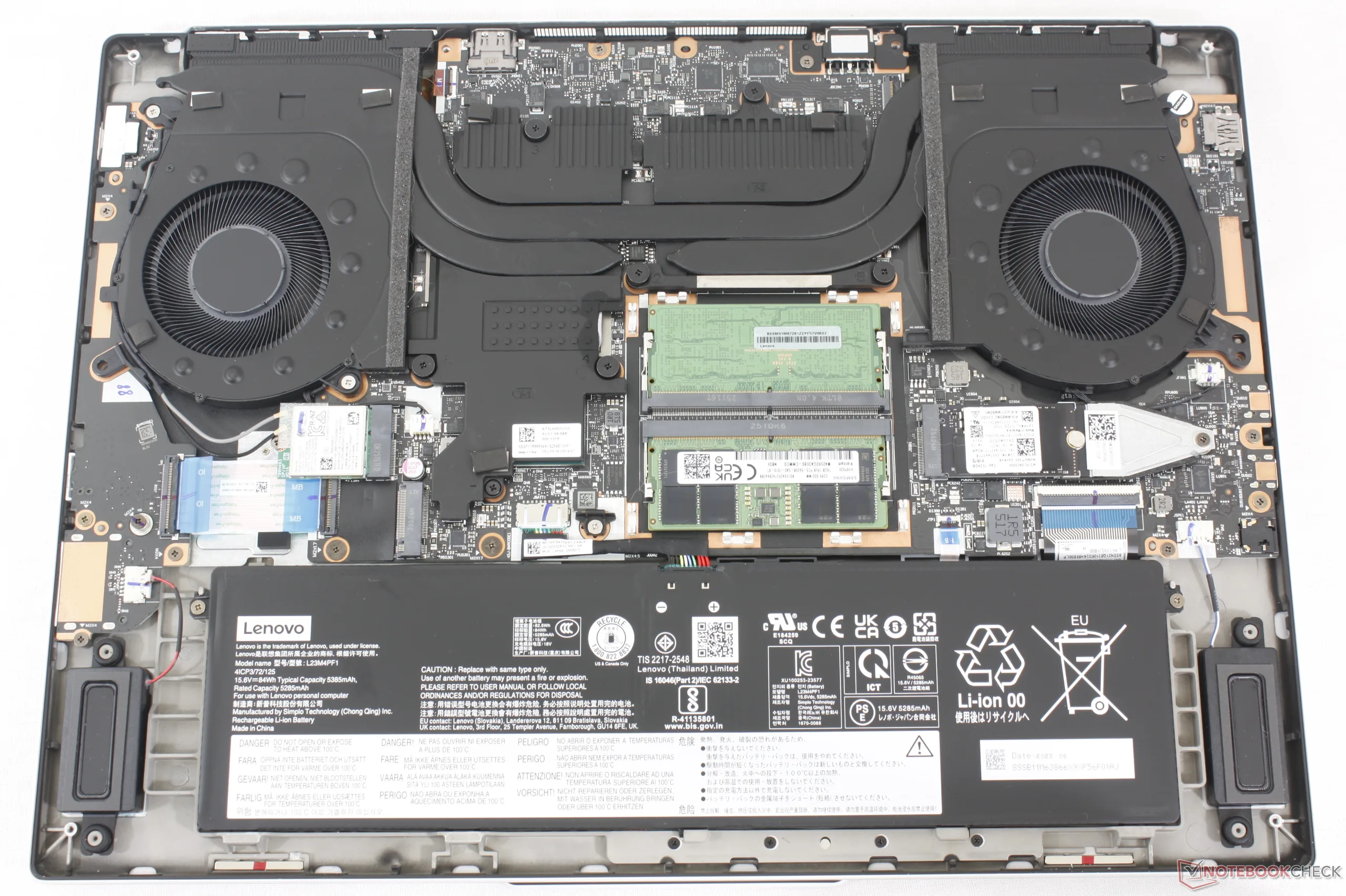 La razón es la comparativamente débil solución de refrigeración. Durante cargas de trabajo combinadas, la CPU y la GPU sólo pueden consumir hasta 80 vatios en total, lo que no es un buen resultado teniendo en cuenta el gran chasis de 16 pulgadas. Para comparar: El portátil para juegos Lenovo Legion 7 16que combina un procesador mucho más rápido con la versión de 115 W de la GeForce RTX 5060 puede manejar hasta 145 vatios, por lo que casi duplica el valor del mucho más caro ThinkPad P16v Gen 3. No queremos ocultar que el Legion también es mucho más ruidoso bajo carga, pero la diferencia de rendimiento sigue siendo bastante significativa.