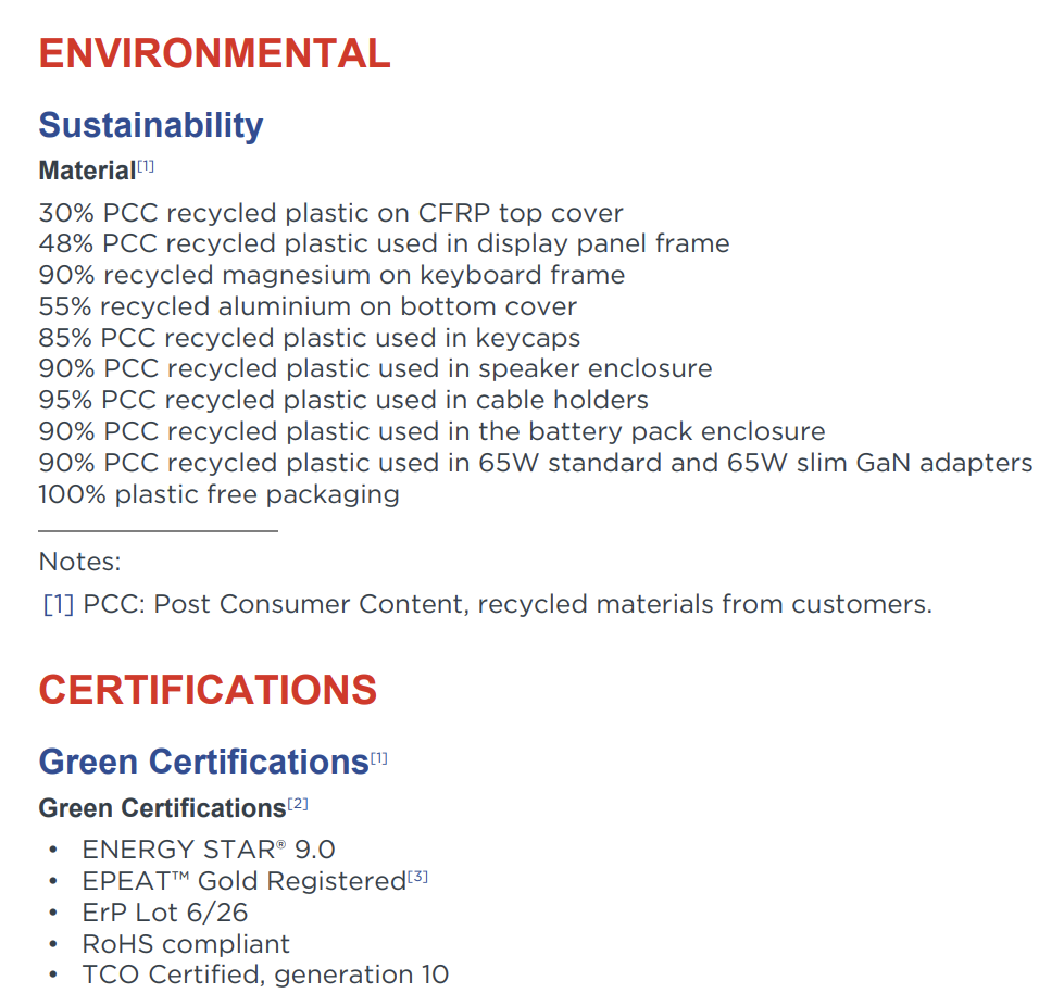 El ThinkPad X13 G6 cumple varios estándares medioambientales, incluido Energy Star, y Lenovo proporciona amplia información sobre la huella de carbono del dispositivo y el uso de materiales reciclados. El embalaje es totalmente reciclable y no contiene plásticos.