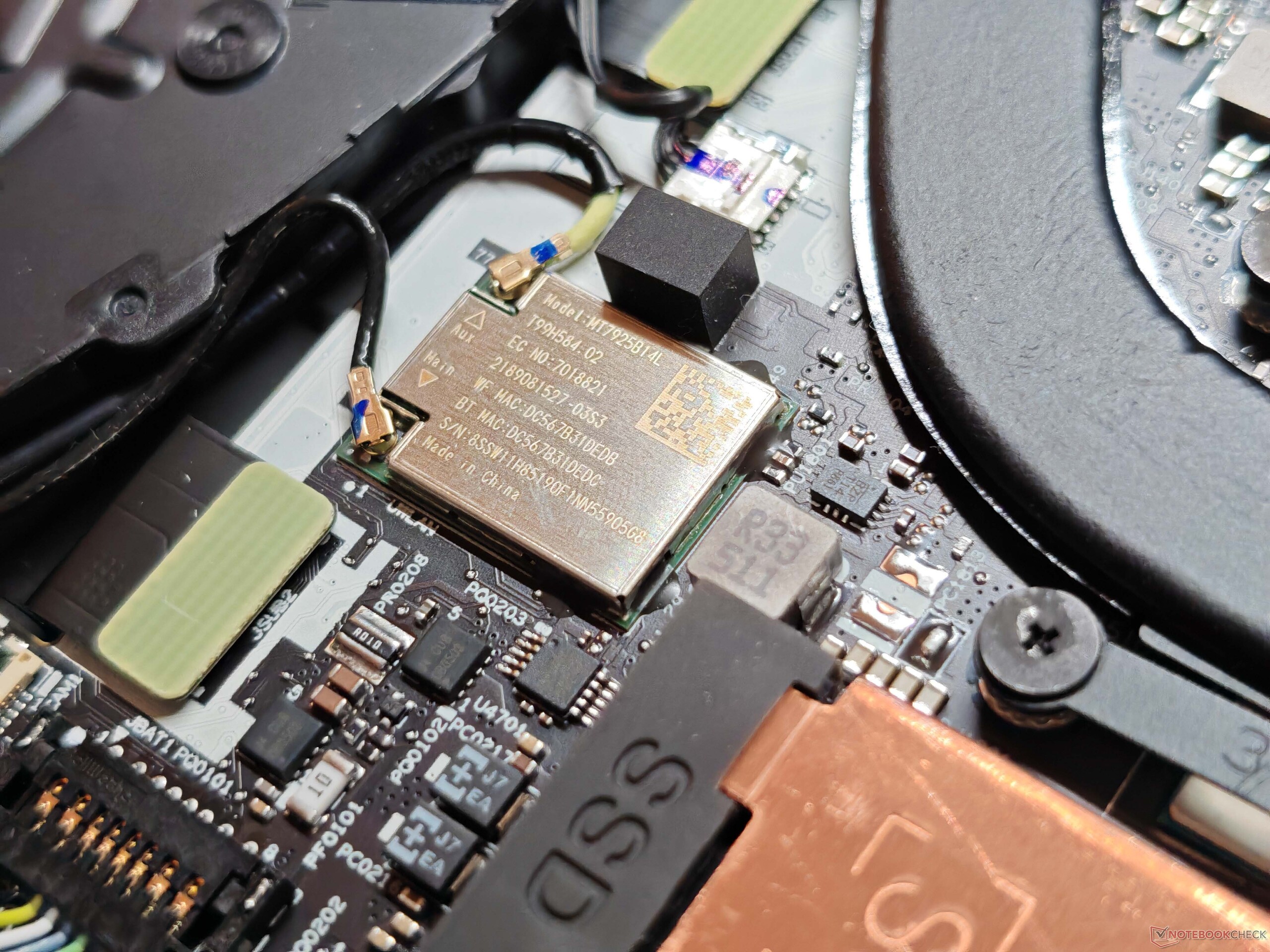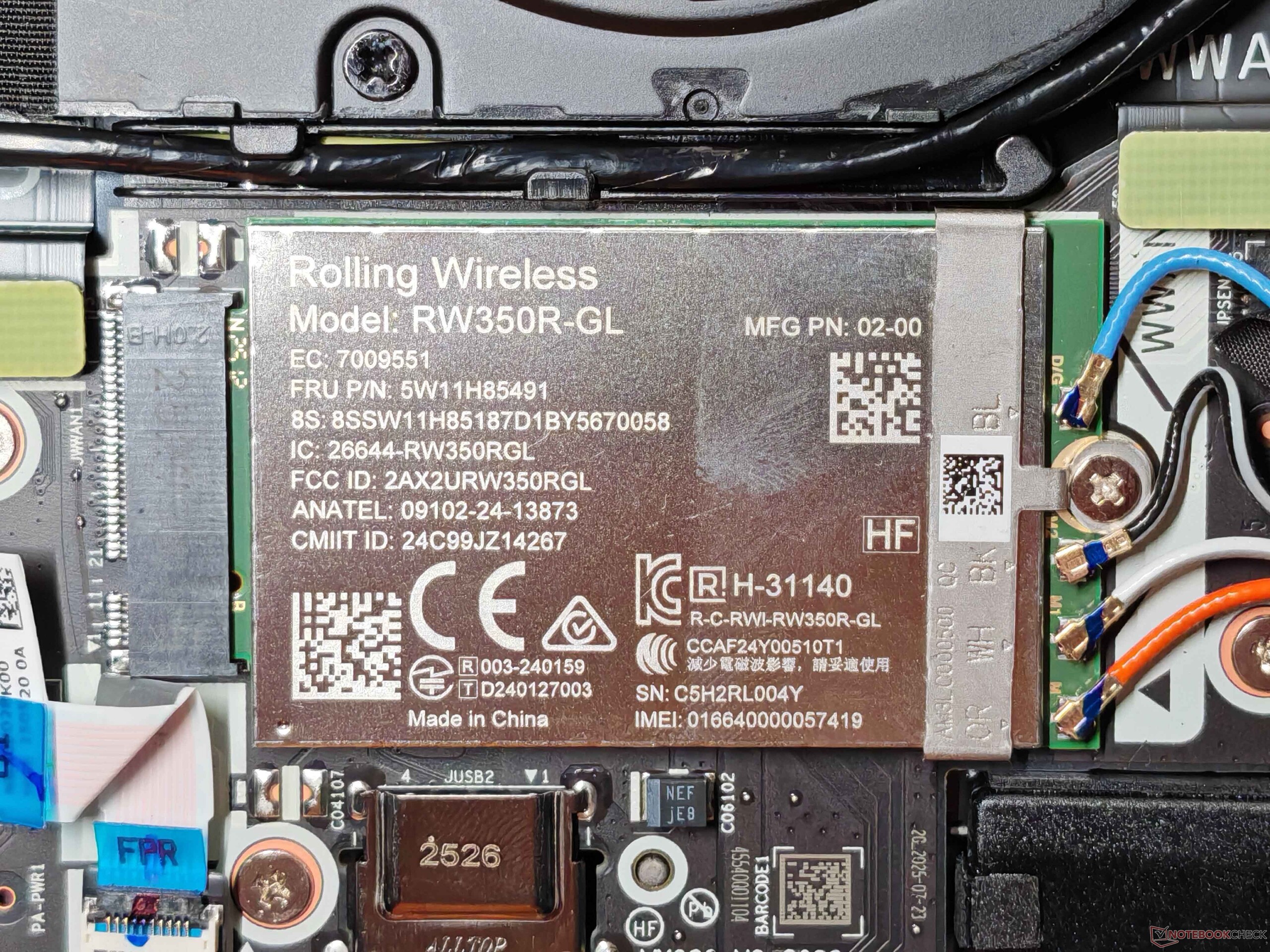 En cuanto a los puertos, ahora sólo hay un único conector USB-A en el lado derecho, mientras que los dos puertos USB-C, incluido el Thunderbolt 4, se encuentran a la izquierda. El módulo WLAN es compatible con Wi-Fi 7 y ofrece velocidades de transferencia muy altas y estables. La cámara de 5 MP (incluye IR) ofrece una calidad de imagen aceptable y cuenta con un obturador mecánico.
