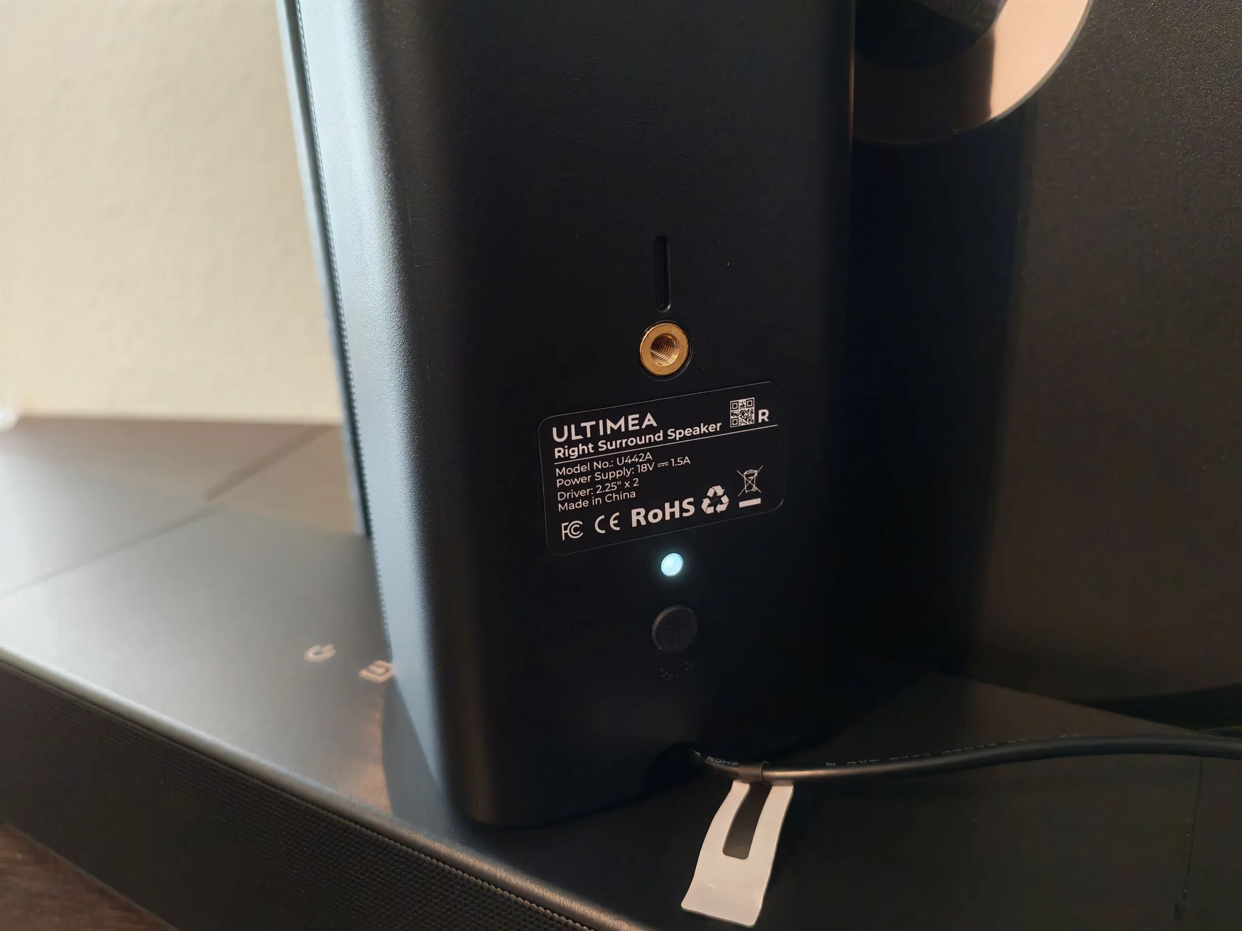 Los dos altavoces satélite, por el contrario, dan la sensación de ser algo menos premium en términos de apariencia, entre otras cosas debido a su bajo peso, aunque la calidad de construcción sigue siendo de alto nivel. Tanto la barra de sonido como los satélites están equipados con transductores adicionales de disparo ascendente diseñados para mejorar la experiencia de sonido envolvente - más sobre esto más adelante.