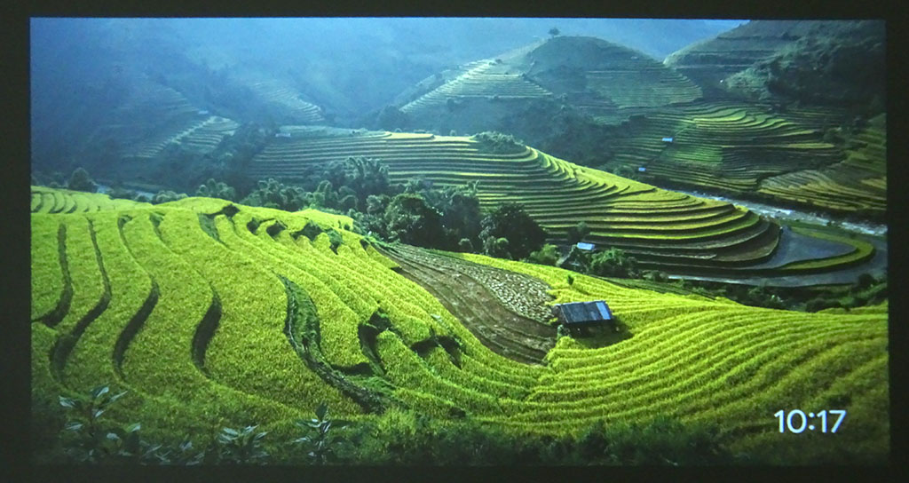 La proyección tiene un aspecto similar a la de una sala de cine (no láser, no IMAX, no Dolby Cinema). Los colores no serán supersaturados, sino similares a los de una película en sus representaciones algo apagadas. Por ejemplo, los exuberantes campos verdes nunca aparecerán tan vibrantes como se ven en los televisores OLED.