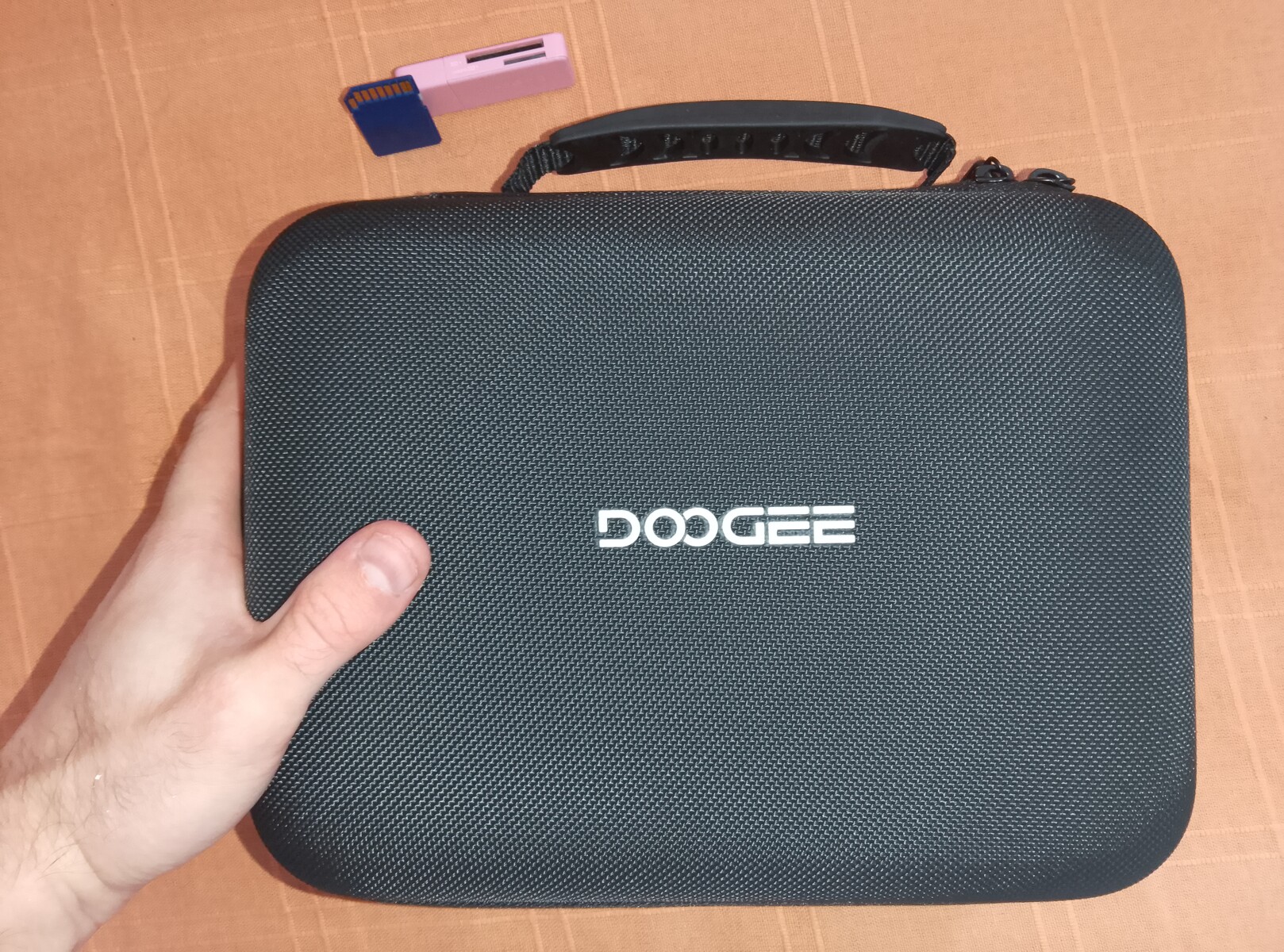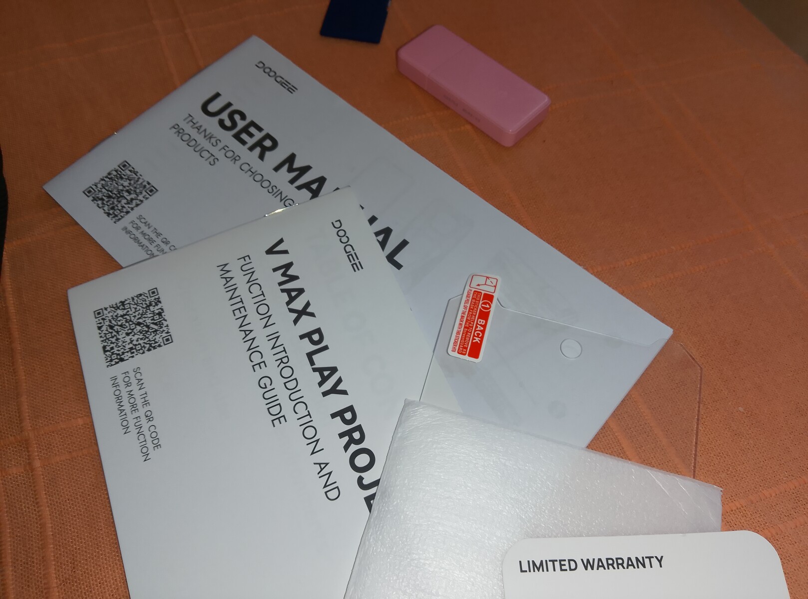 Además de una caja de cartón normal, un estuche de viaje de plástico negro garantiza la seguridad del teléfono en su camino hacia el usuario. Además de un V Max Play, el estuche contiene un pequeño cargador de 45 W, un cable USB-C a USB-C, un protector de pantalla duro, varios folletos informativos y de garantía, y una funda protectora dura -un gran trozo de plástico que protege la parte trasera, inferior, izquierda y derecha del teléfono Doogee, con un asa en uno de sus lados. Este es el conjunto básico de artículos; los que estén dispuestos a pagar un poco más también recibirán un pequeño altavoz Bluetooth con la marca Doogee y un soporte para que, con suerte, utilizar el V Max Play como proyector sea un poco más fácil.