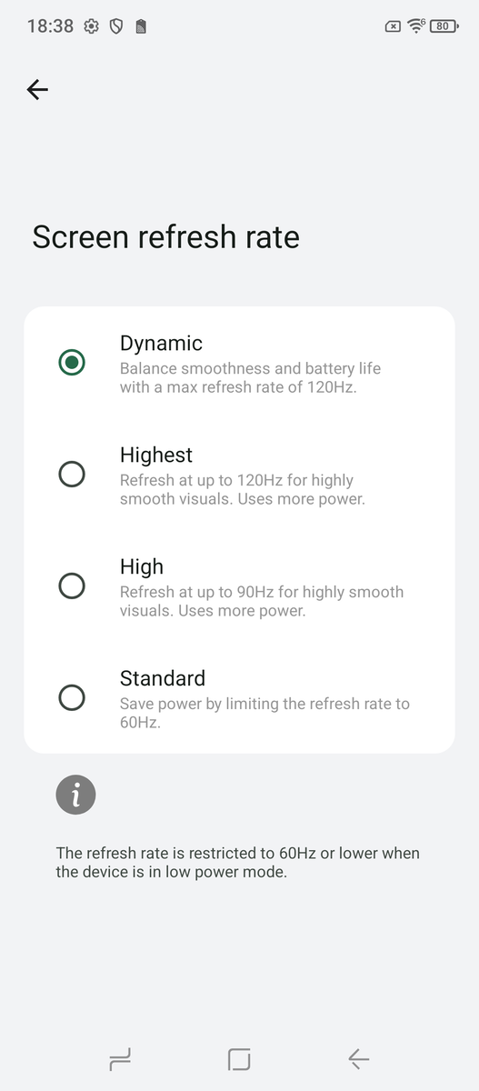 La pantalla IPS de 6,78 pulgadas y resolución FHD+ (2460 x 1080) es decente pero no impresiona en modo alguno. Simplemente no es particularmente nítida, ni brillante, ni vibrante. Una rápida visita al submenú de ajustes para desarrolladores revela que la mayoría de las aplicaciones se renderizan con un ancho de 360 píxeles, lo que equivale a una resolución real (viewport) de 820 x 360.