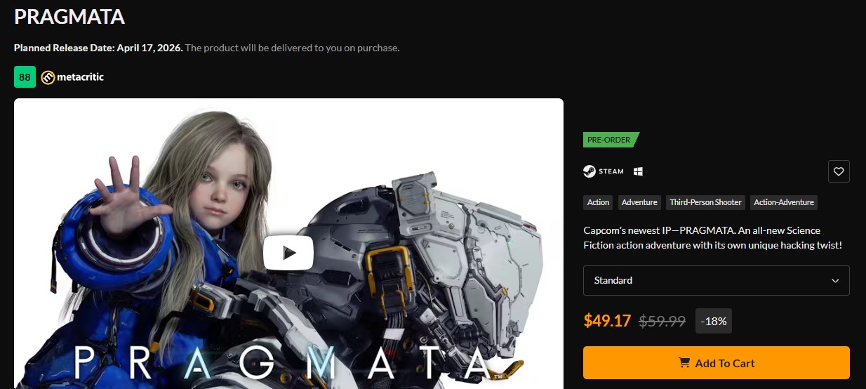 Los nuevos lanzamientos no suelen tener descuentos tan pronto. En la mayoría de los casos, los jugadores tienen que esperar semanas o incluso meses antes de ver algún recorte en el precio. Sin embargo, ese no es el caso aquí. En Fanatical, Pragmata ya está disponible con un descuento del 18%, lo que ha rebajado su precio de 59,99 $ a 49,17 $.