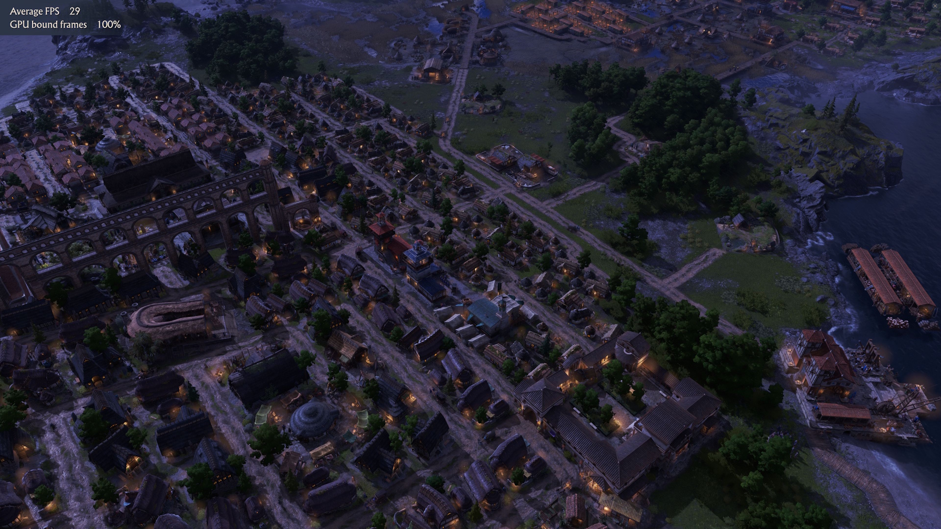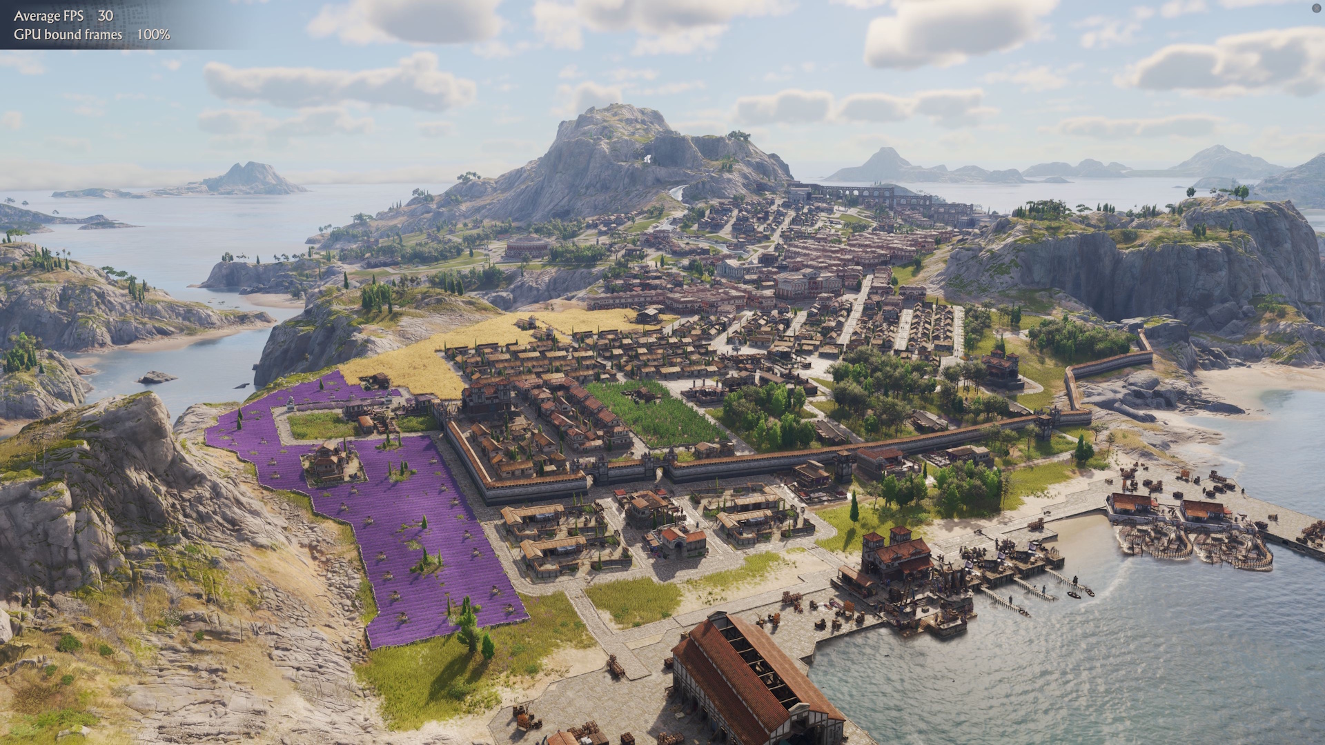 Anno 117 es asombrosamente bonito para un título de construcción, pero también exigente. Los ondulantes campos de lavanda, los paisajes tormentosos y empapados por la lluvia, las pintorescas costas, las detalladas ciudades y el ajetreo de sus habitantes ejercen una seria presión sobre el hardware.