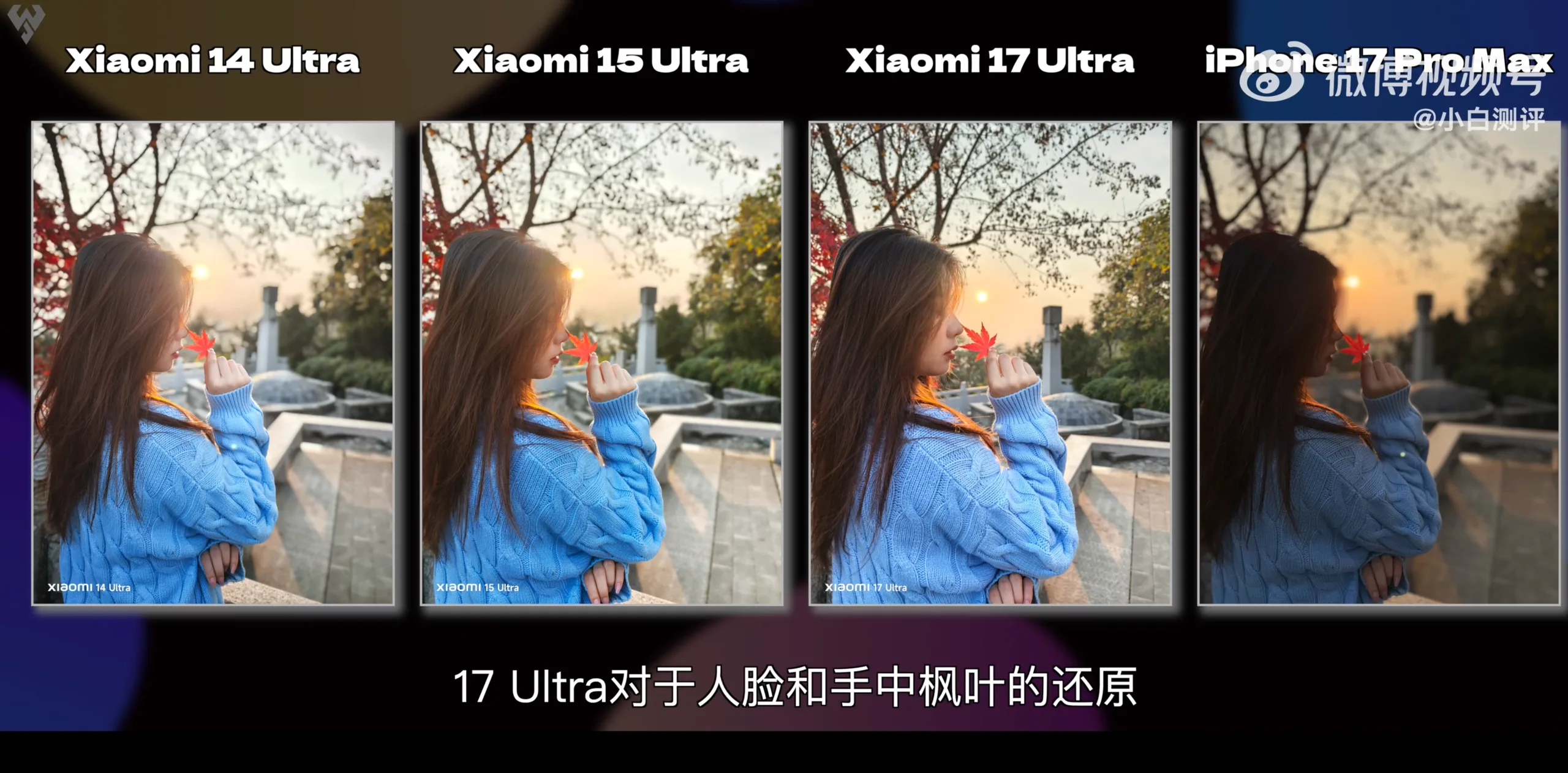Esta toma también se puede encontrar en el vídeo de revisión de Xiaobai, que contiene una comparación con tres predecesores del Xiaomi 17 Ultra, así como con el iPhone 17 Pro. Sin duda ilustra el progreso a través de estas generaciones de smartphones.