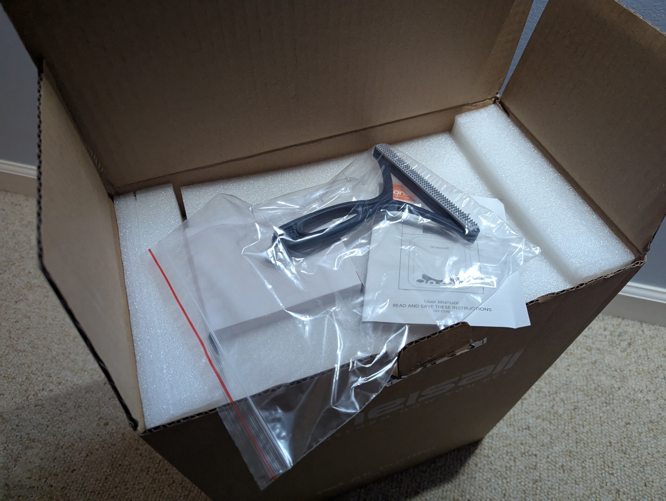 La Oneisall PP02 llegó en un embalaje mínimo con todo envuelto en plástico. El paquete incluye la unidad principal, los juegos de filtros dobles (preinstalados) y un cepillo especial para pelusas. El cepillo fue un buen añadido y puede ayudar a los usuarios a mantener los prefiltros lavables y prolongar la vida de los filtros HEPA primarios.