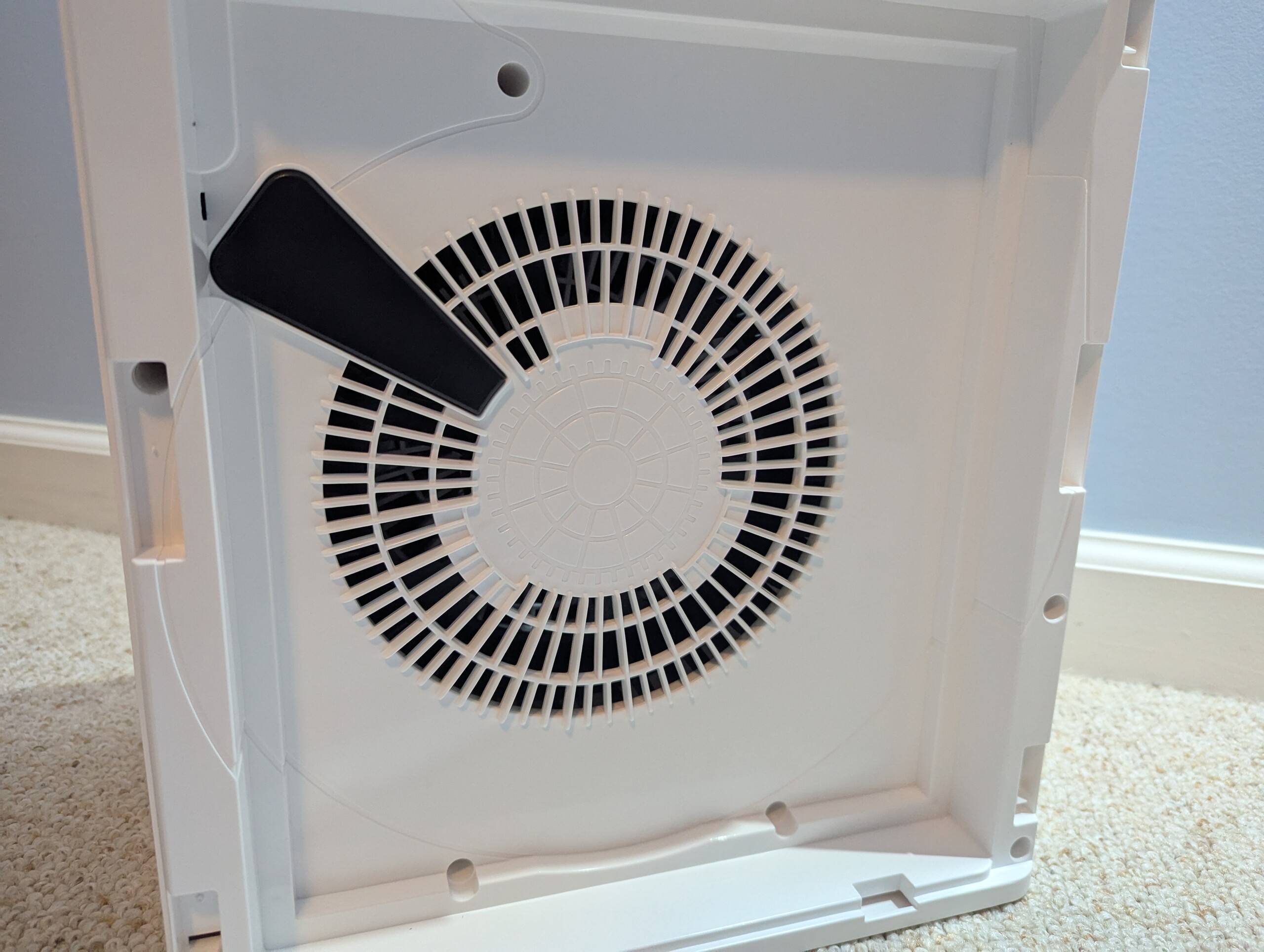 A primera vista, la Levoit Core 300-P parece ser la más rápida con 17 segundos. Sin embargo, la Core 300-P es una unidad más pequeña con un recorrido del aire más corto y un único filtro, lo que permite un ciclado naturalmente más rápido en una cámara pequeña, haciendo que el rendimiento de 24 segundos de la Oneisall PP02 sea posiblemente más impresionante. Consiguió este tiempo mientras forzaba el aire a través del doble de la resistencia producida por dos filtros HEPA H13 completos y dos bancos de carbón activado. Es significativamente más difícil mover el aire rápidamente a través de tanto medio de filtración. El hecho de que la Oneisall aventajara a la Core 300-P en sólo 7 segundos habla más de la funcionalidad del diseño y del rendimiento del motor.