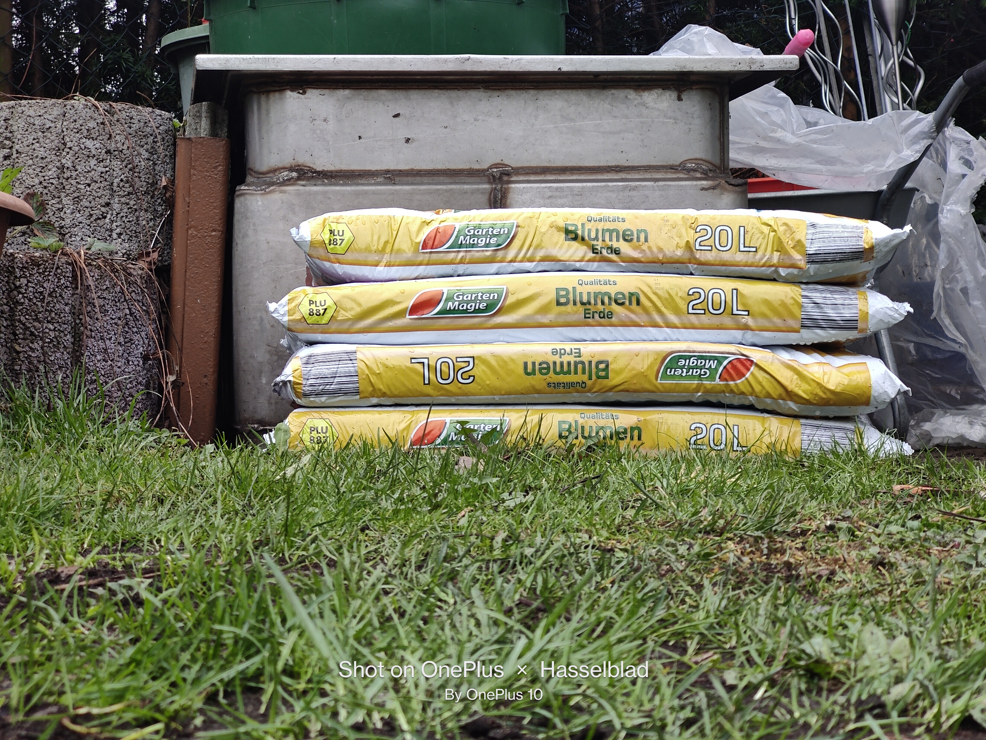 Las tendencias que vimos también continúan en nuestra tercera escena. Sin embargo, el OnePlus 10 Pro no revela más detalles que el 7T Pro lo hace. También en esta imagen, el buque insignia de 2019 muestra colores más precisos (como los del techo) que el actual smartphone de OnePlus. En la escena de la bolsa de tierra de flores, el 7T Pro lo hace sorprendentemente bien. En esta imagen, no elegimos a propósito el punto focal, sino que nos limitamos a apuntar el smartphone a través de apuntar y disparar varias veces, dejando que elija el enfoque por sí mismo. El centro de la imagen, que es la zona con las bolsas de tierra de las flores, se reproduce nítido y claro sin que la hierba tenga ningún impacto