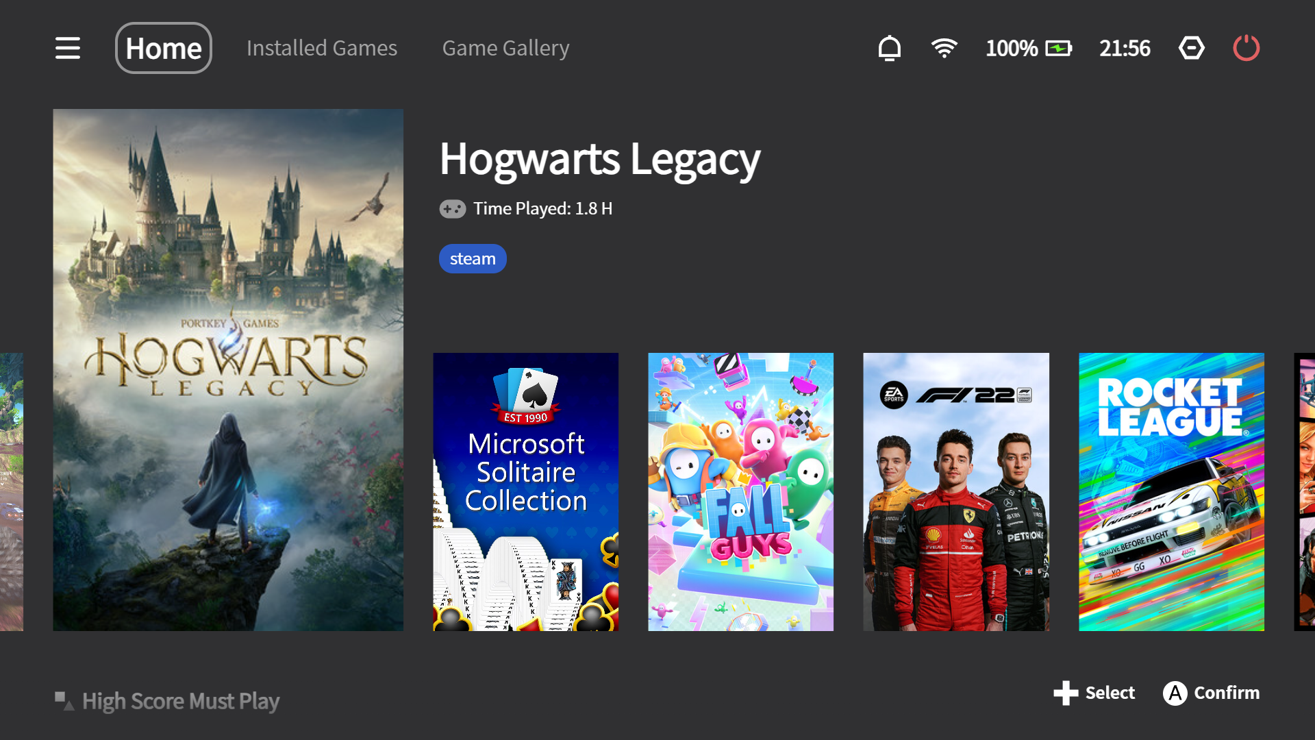 Ayaneo ofrece aquí una experiencia de usuario casi perfecta con AyaSpace. La aplicación puede iniciarse en cualquier momento a través de su propio botón como una superposición y ofrece una gran variedad de opciones para controlar el rendimiento del pequeño dispositivo portátil. Esto incluye numerosos ajustes de comodidad, una superposición de rendimiento con un contador de FPS, ajustes del mando y mucho más. Una pulsación larga del botón Aya abre la aplicación en modo de pantalla completa. Aquí se pueden gestionar e iniciar juegos y realizar muchos otros ajustes. Los juegos descargados de Steam, GOG, Epic y Ubisoft se añaden automáticamente a la biblioteca. Sólo tuvimos que ayudar manualmente con los juegos de Amazon Prime Gaming.