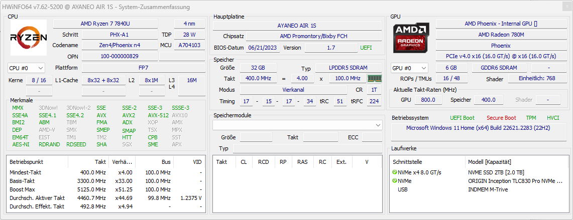 Sin embargo, encontramos más puntos positivos que negativos en el interior del Ayaneo Air 1S. Nos sorprende que el fabricante recurra a componentes estándar para el módulo Wi-Fi y la unidad SSD M.2-2280 a pesar de su construcción compacta. Sólo la memoria de trabajo de 32 GB, de tamaño generoso, está soldada. Aparte de eso, hay muchos otros componentes modulares que ya hemos descubierto individualmente en la tienda online de Ayaneo.