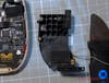 Los dos primeros tornillos que sujetan el dispositivo se encuentran fácilmente a ambos lados del puerto USB-C en la parte inferior. Otro está oculto bajo la tapa de la ranura para tarjetas microSD. Unos cuantos tornillos fijan también las dos mitades de la carcasa en la parte superior. Para acceder a ellos, tiene que retirar con cuidado la barra superior entre los botones de los hombros. También hay un tornillo oculto debajo de cada una de las teclas de disparo. Después de desenroscarlos, sólo una herramienta de apertura de plástico ayuda a hacer palanca para sacar los numerosos clips. En general, la funda es muy difícil de abrir.