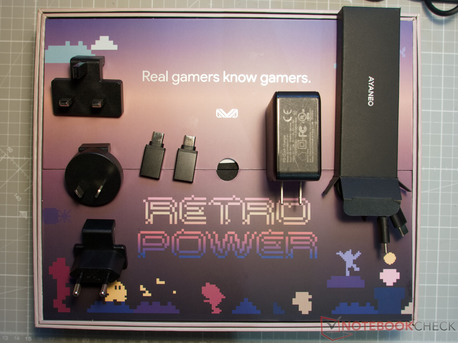 La Ayaneo 1S viene con una fuente de alimentación muy pequeña de 65 vatios y algunos adaptadores de viaje para poder utilizarla en todo el mundo. El fabricante también incluye dos adaptadores de USB-A 3.0 a USB-C.