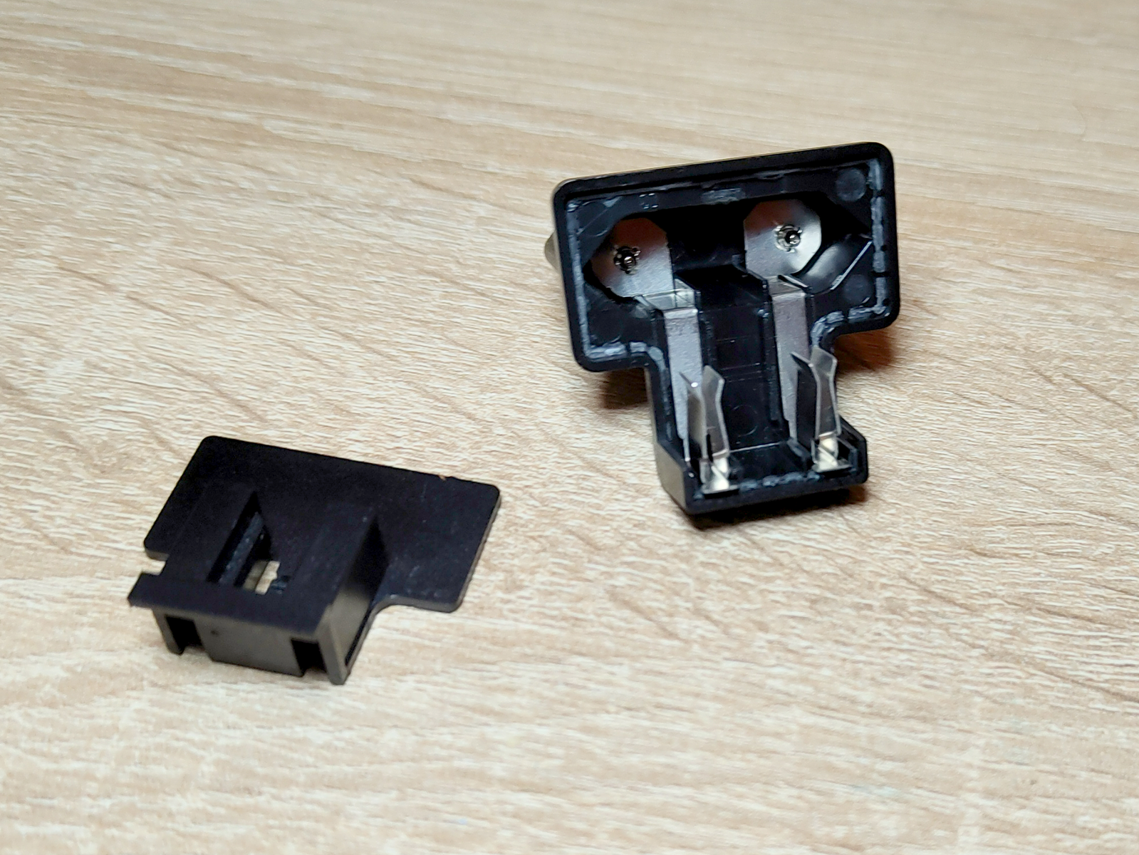 Un problema de los adaptadores incluidos es que se pegan entre sí. Al cabo de poco tiempo, las dos mitades de la funda de nuestro adaptador UE se separaron entre sí. Una reparación con superglue tuvo éxito, pero existe un riesgo considerable si esto ocurre cuando la fuente de alimentación está enchufada.