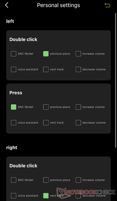 En cuanto a las características, los auriculares Z1 son bastante rudimentarios. Los auriculares tienen zonas táctiles de infrarrojos para controlar el audio. Los usuarios pueden establecer cuatro controles táctiles diferentes a través de la aplicación, uno para un toque corto y otro para un toque largo en cada auricular. Por defecto, están configurados para saltar la pista actual (pulsación corta, derecha), activar el asistente de voz (pulsación larga, derecha), reproducir la pista anterior (pulsación corta, izquierda) o cambiar el perfil ANC (pulsación larga, izquierda). La personalización es un buen detalle y no es algo que se vea habitualmente por debajo de los 100 dólares.