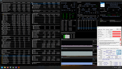 La ejecución simultánea de Prime 95 y Furmark ralentiza la CPU hasta hacerla retroceder a 1,0-1,1 GHz. La iGPU también retrocede ligeramente hasta los 800 MHz. Sin embargo, las temperaturas en todo el paquete de la CPU se mantienen razonables en 69º C. La CPU alcanza su TDP nominal de 28 vatios durante las tres pruebas (aunque hay algunos picos cortos de 48 y 43 vatios al comienzo de Prime95 y Furmark, respectivamente)