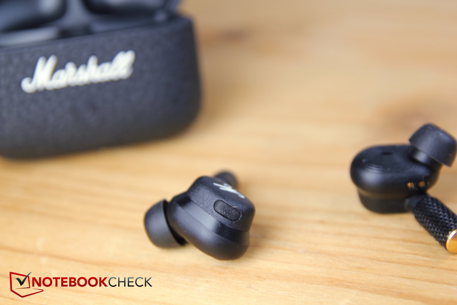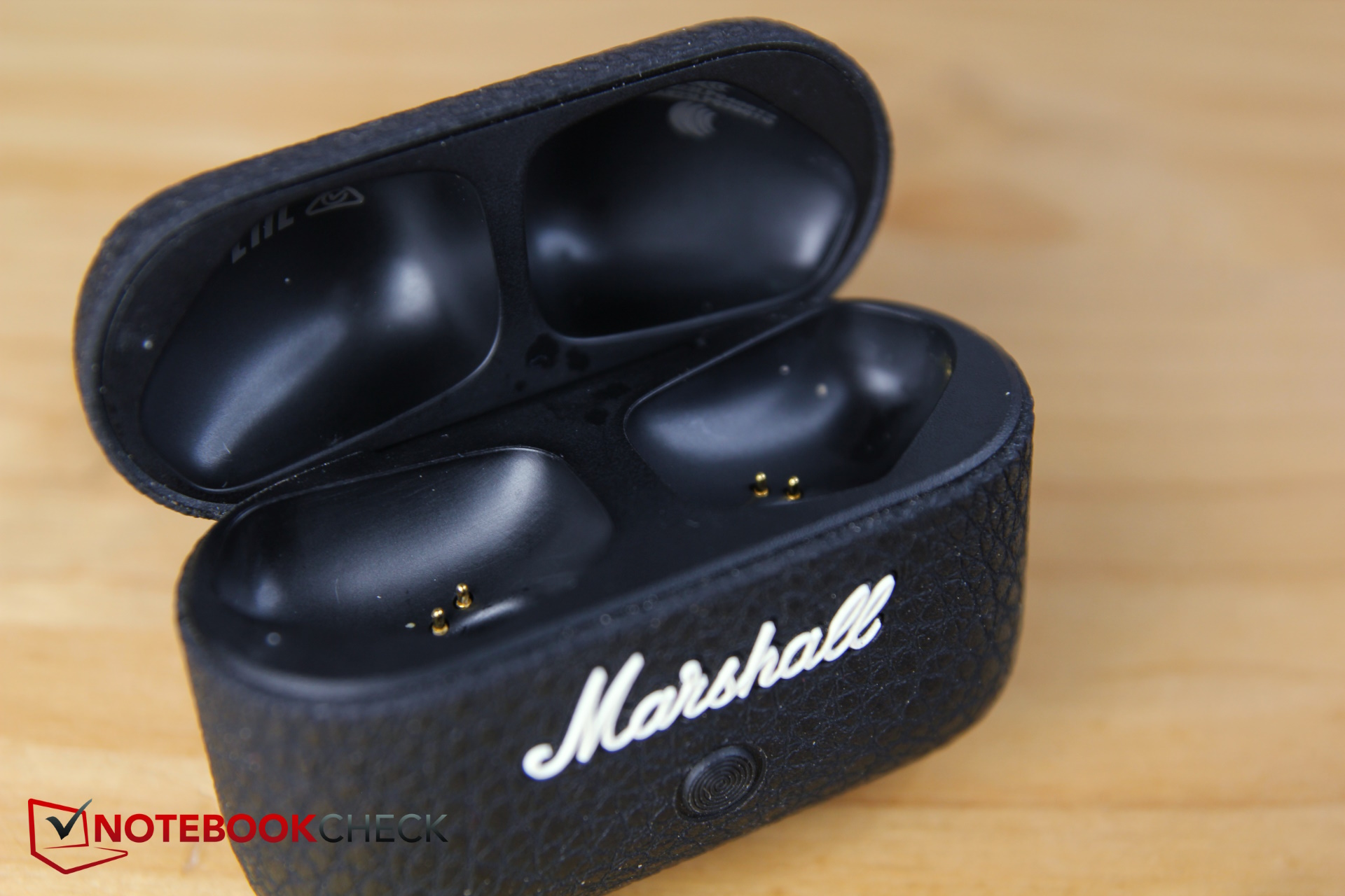 Marshall presenta sus auriculares con un diseño típico del fabricante de culto; es similar al de sus amplificadores de guitarra y altavoces Bluetooth. El estuche de carga y los propios auriculares son de color negro; el primero presenta un aspecto y una estructura de cuero artificial, lo que significa que destaca entre todos los demás auriculares (siempre que le guste ese tipo de diseño).