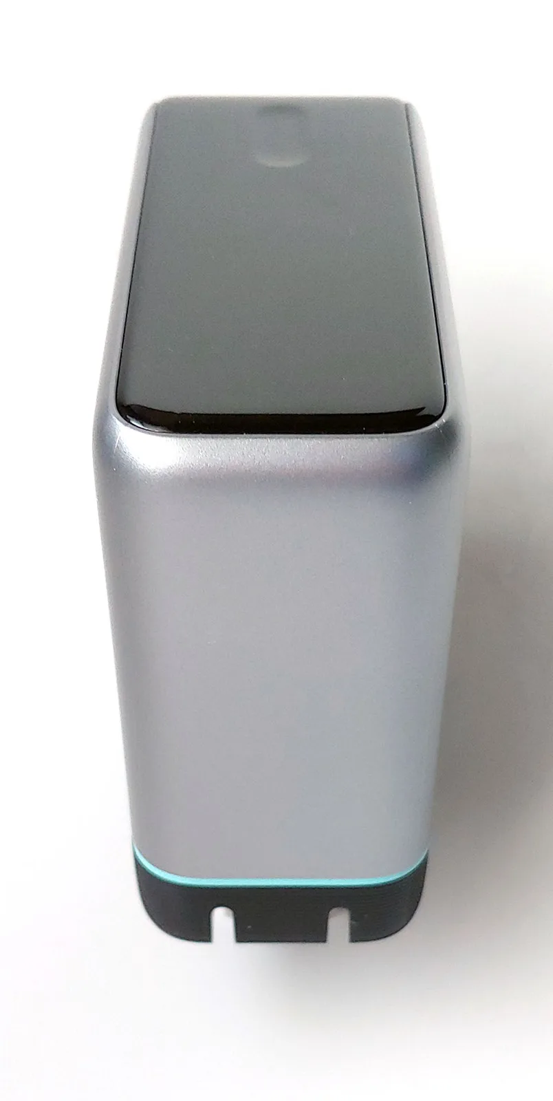 El cargador de CA tiene un diseño sencillo con bordes curvados y laterales planos. Cuatro puertos USB están alineados en el borde frontal -un puerto USB-A y tres puertos USB-C- mientras que la pantalla a color y el botón táctil están situados a lo largo de la parte superior. Las clavijas de CA abatibles están situadas a lo largo de la parte inferior. En general, tiene un diseño con clase que resulta fácil de agarrar y utilizar con una sola mano.