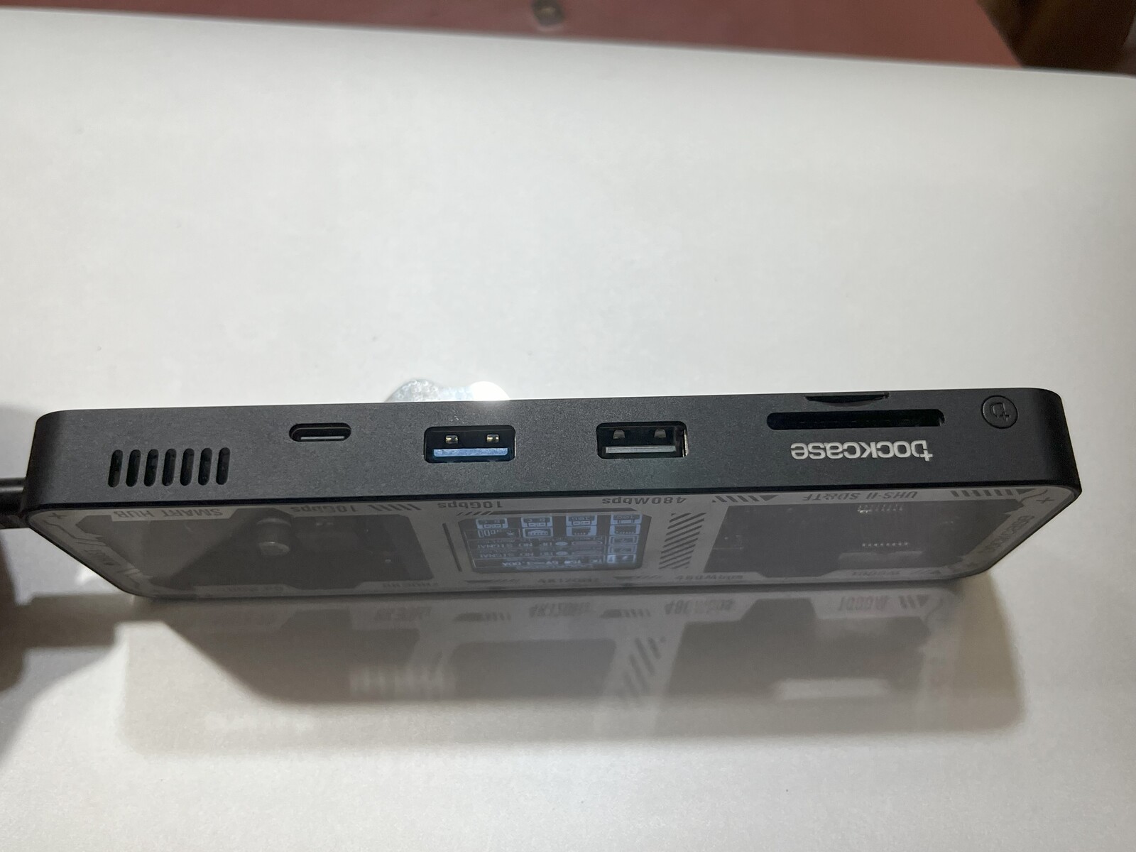 Su puerto de carga de 100 vatios tiene algunas interacciones interesantes con los otros conectores. En una ocasión, mi MacBook Air se negó a mostrar la salida en un monitor con el cargador conectado. Dockcase dice que el dock resta 20 vatios a un cargador PD de 60 vatios, mientras que un cargador PD de 100 vatios debería funcionar a máxima velocidad. Un medidor de potencia USB genérico conectado al circuito confirmó dichos hallazgos.