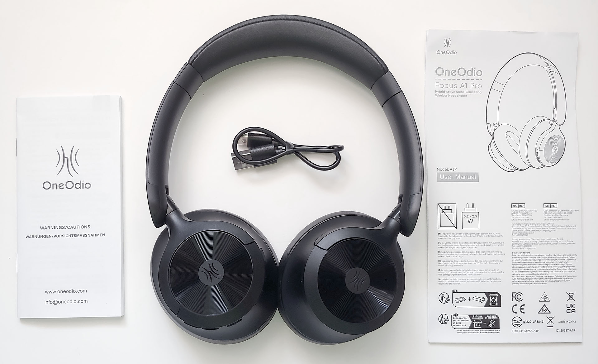 El embalaje incluía un manual, un folleto normativo y un cable de carga USB-C.