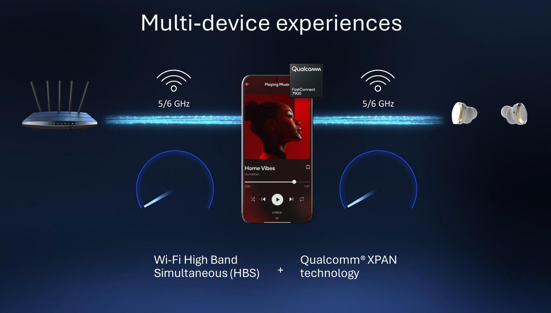 Esto suena como el tipo de función de calidad de servicio que suele encontrarse en los routers, pero según Qualcomm, funciona de forma totalmente independiente del router en cuestión. Gracias a la integración de UWB, también se cubren áreas de aplicación como encontrar objetos más fácilmente, la navegación en interiores o las llaves digitales (por ejemplo, para coches). En cuanto a Bluetooth, ahora es compatible con BT 5.4, incluido LE Audio, lo que indica la disponibilidad de Auracast. Qualcomm afirma que la eficiencia energética ha mejorado en un 40% con respecto al primer sistema, FastConnect 7800. Qualcomm afirma un lanzamiento en la segunda mitad de 2024, presumiblemente junto con el Snapdragon 8 Gen 4 en otoño.