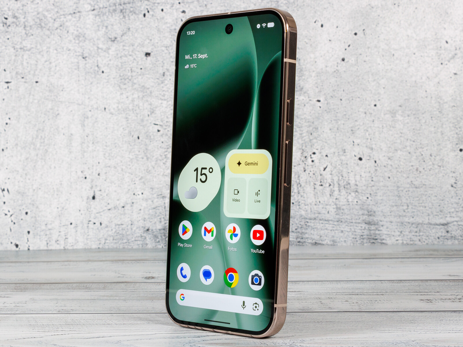 La pantalla OLED LTPO de 6,3 pulgadas con una resolución de 2.856 × 1.280 alcanza un brillo máximo de hasta 3.200 cd/m² y tiene una frecuencia de actualización de 120 Hz, pero utiliza un PWM de frecuencia bastante baja. Las principales características del Pixel incluyen Wi-Fi 7, Bluetooth 6.0, UWB, NFC y GNSS de doble banda. Este último no es muy preciso en interiores.