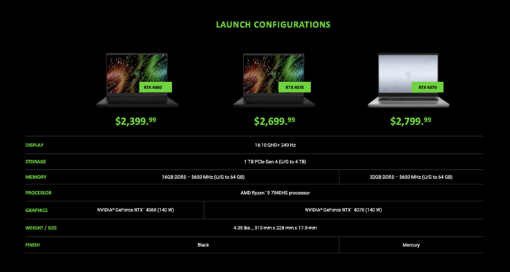 Como alternativa, ofrecerá el modeloRyzen 9 7940HSyGeForce RTX 4070de 140 W, por un recargo de 300 dólares. Aunque esta edición también viene con 16 GB de RAM, hay una opción de 32 GB de RAM por 2.799,99 US$ que viene en acabado Mercury. Los pedidos anticipados del Blade 14 2023 se abren hoy en EE.UU.; para más información, visite el sitio web de Razer https://www.razer.com/para obtener más información. Como referencia, la empresa aún no ha comentado la disponibilidad en otros mercados. Sin embargo, comenzará a distribuir su portátil basado en Zen 4 el 20 de junio en Estados Unidos.