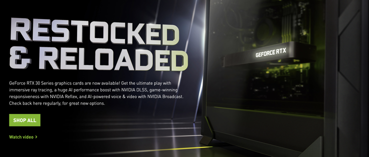 La campaña "Restocked & Reloaded" de NVIDIA pretende recordar a los jugadores que esto ya no es así, excluyendo las tarjetas Founders Edition. Irónicamente, muchos de los ejemplos que NVIDIA anuncia están agotados en Estados Unidos, como las RTX 3060 yRTX 3070personalizadas. No siempre ocurre lo mismo en otros mercados, como el Reino Unido, pero la disponibilidad sigue siendo escasa en su mayor parte.