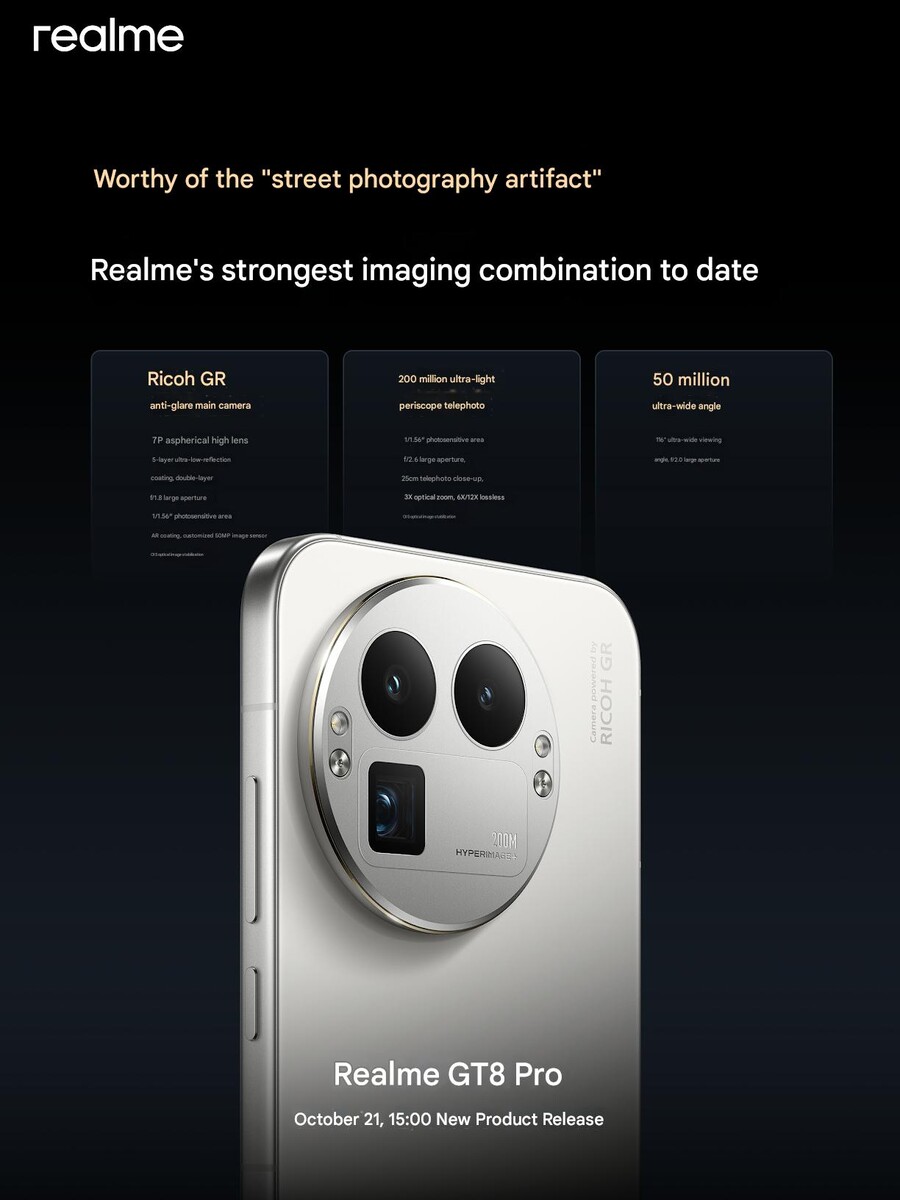 El vicepresidente de Realme ha estado muy activo en Weibo durante los últimos días y ha compartido un montón de especificaciones técnicas del Realme GT 8 Pro antes de que el buque insignia con cámara Ricoh GR sea presentado oficialmente el 21 de octubre. Ya se han confirmado algunos detalles y el SoC Snapdragon 8 Elite Gen 5, y hay más información sobre las especificaciones de la batería, el chasis, las cámaras y algunos otros aspectos del próximo teléfono inteligente de Realme.