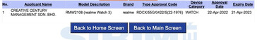 Las pruebas de este dispositivo se han acumulado recientemente en forma de certificaciones https://www.mysmartprice.com/gear/realme-watch-3-moniker-imda-india-bis-listing/ por la Oficina de Normas de la India (BIS) y de la Autoridad de Desarrollo de Medios de Comunicación de Singapur (IMDA), así como de SIRIM de Malasia (el mercado en el que el Watch 2 se estrenó)