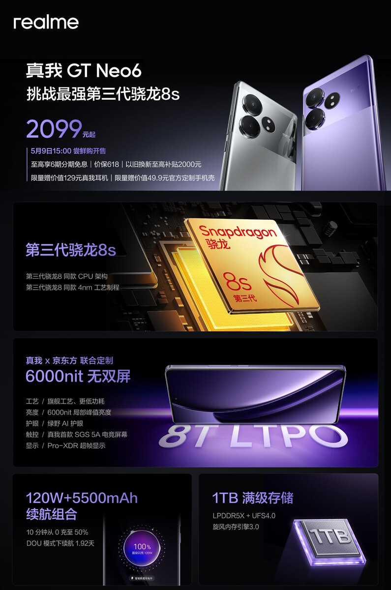 Realme ha ampliado la serie GT Neo6 con el GT Neo 6 estándar, tras haber dado el pistoletazo de salida hace casi un mes con el GT Neo6 SE. Como era de esperar, el GT Neo6 se basa en el GT Neo6 SE cambiando su chipset Snapdragon 7 Plus Gen 3 por el Snapdragon 8s Gen 3. Teóricamente más potente gracias al aumento de la velocidad de reloj de la CPU y a una mejor GPU, el Snapdragon 8s Gen 3 cuenta con los mismos núcleos de CPU que el Snapdragon 7 Plus Gen 3.