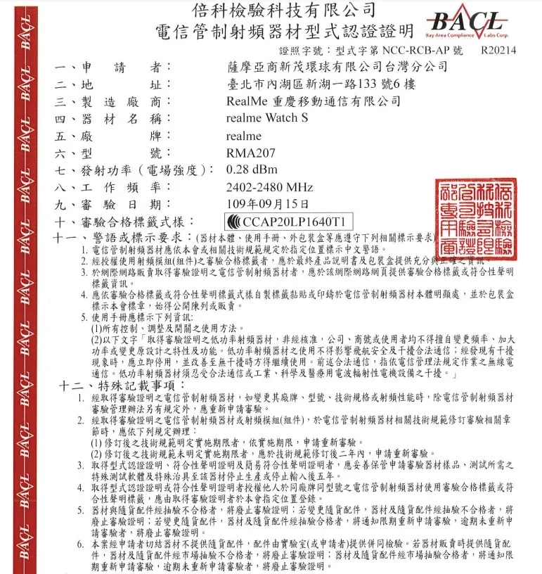 Este escrito revela que el Reloj Realme S (o RMA207) es un dispositivo IP68 con una batería que se carga a 5V/0,5A y tiene una capacidad de 390mAh. Esta, entonces, puede ser la diferencia que da a la variante que lo acompaña el apodo de Pro: está clasificado para 420mAh. Sin embargo, estos nuevos relojes inteligentes aún carecen de una fecha oficial de lanzamiento.