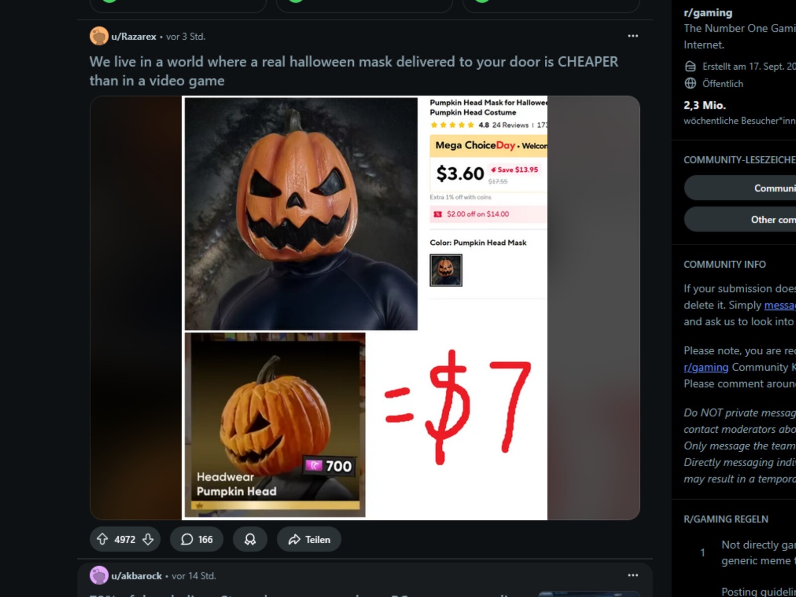El 4 de noviembre, un post de Reddit titulado "Vivimos en un mundo en el que una máscara de Halloween real entregada en tu casa es más barata que una de un videojuego" se hizo viral. El post señalaba que una máscara de cabeza de calabaza en Fortnite cuesta el doble que una versión similar en la vida real. La sorprendente diferencia de precio llamó rápidamente la atención, suscitando unos 5.500 comentarios en tan sólo tres horas.