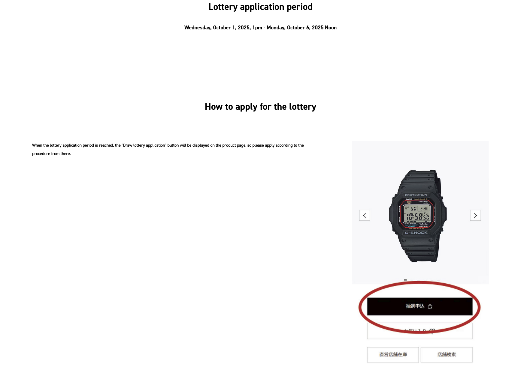 Según Great G-Shock Worldel inventario anticipado ha resultado difícil de conseguir, y muchos puntos de venta afirman que sus asignaciones iniciales ya se han agotado el primer día de reservas. El sistema de lotería en línea de Casio es actualmente la única vía que queda para la mayoría de los compradores, y las asignaciones finales serán probablemente muy limitadas. Más información sobre la solicitud de lotería aquí.