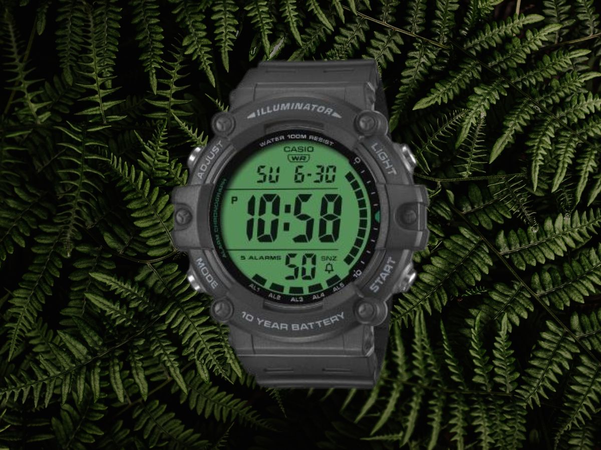 Se dice que los relojes AE-1500WHC de Casio muestran la hora en formatos de 12 o 24 horas, y que la pantalla digital también muestra el día de la semana y la fecha. Parece que hay herramientas como un cronómetro de 1/100 de segundo, un temporizador de cuenta atrás de hasta 24 horas y cinco alarmas diarias. Además, debería haber una retroiluminación LED para ayudarle a leer la pantalla con poca luz, y es probable que estos relojes sean resistentes al agua hasta 10 ATM.