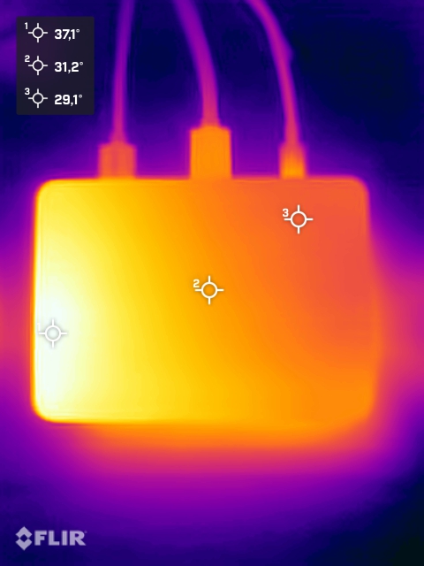 La carcasa de la Khadas Mind Pro sólo se calienta ligeramente cuando está en reposo. Gracias a su construcción metálica, el calor generado también se distribuye de forma relativamente uniforme por la superficie. Bajo carga, la temperatura de la carcasa aumenta significativamente en comparación con el modo inactivo. No obstante, las temperaturas superficiales medidas de algo más de 40 C se mantienen en general en un rango no crítico.