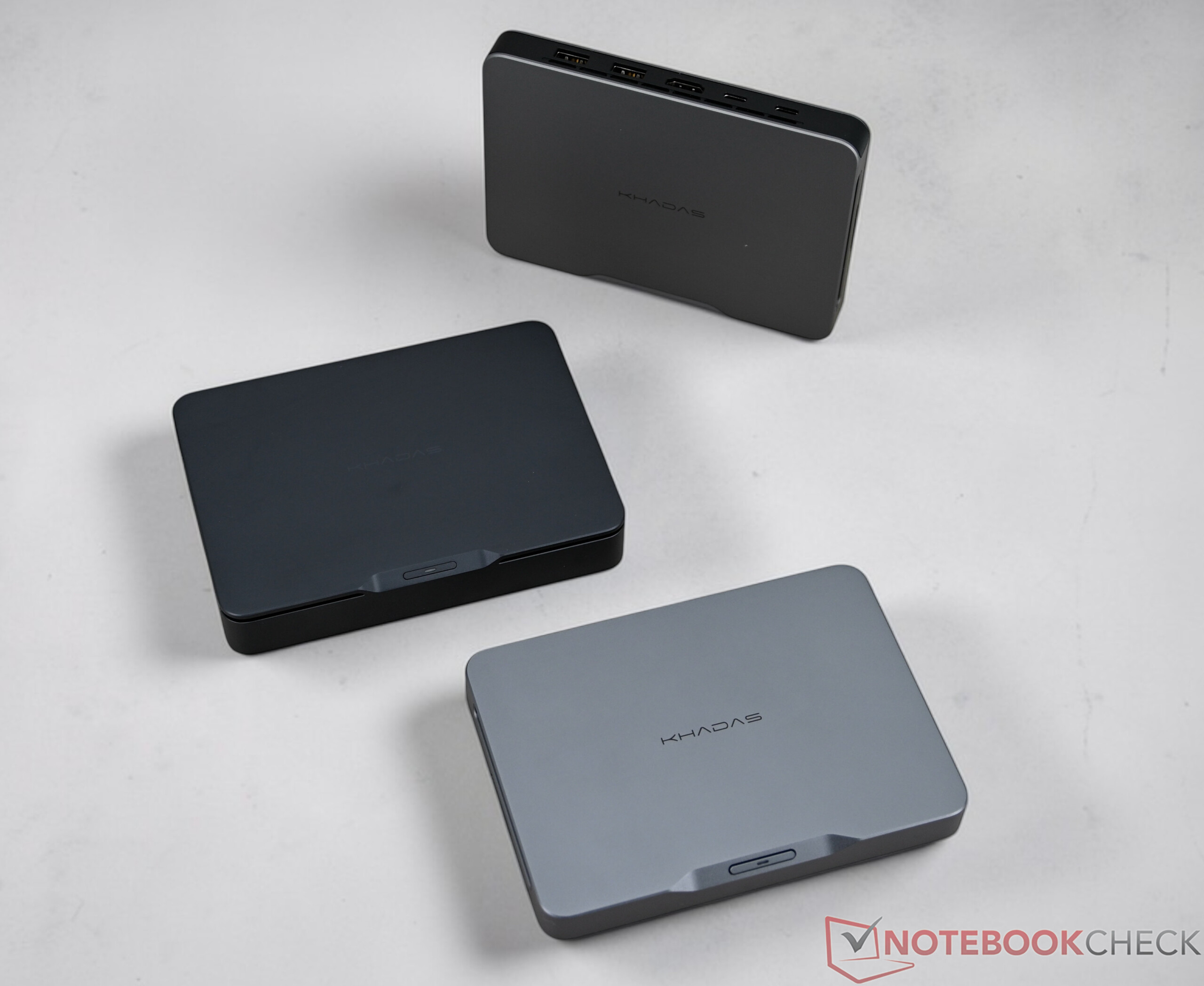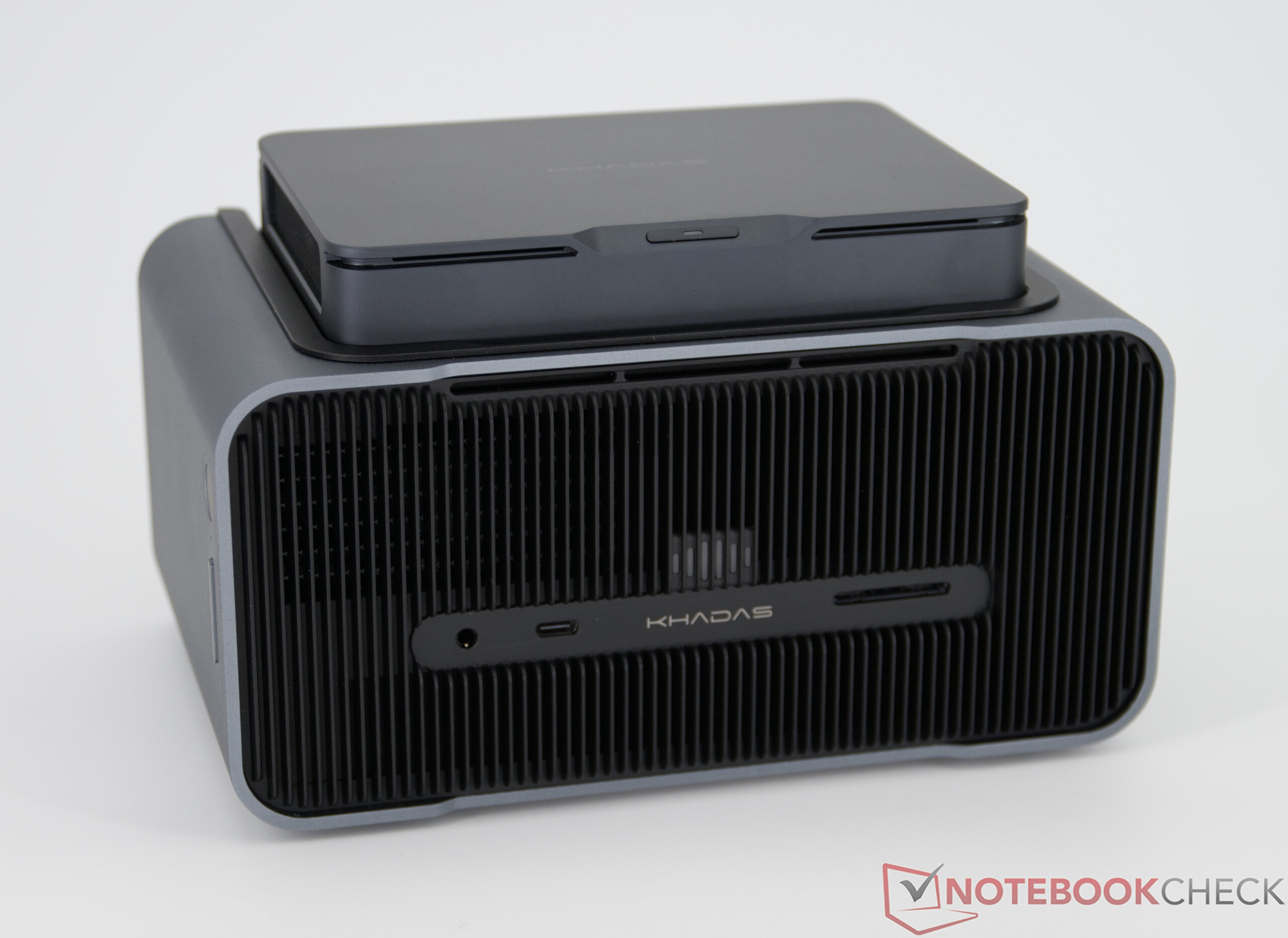Khadas también se mantiene fiel a su línea en lo que respecta a la carcasa y la mano de obra. La carcasa metálica de alta calidad tiene un aspecto muy robusto y de gran calidad, mientras que el formato ligeramente mayor del Mind Pro presenta ventajas en términos de refrigeración y ruido. Al mismo tiempo, el sistema sigue siendo extremadamente compacto y compatible con los accesorios existentes del fabricante. La batería integrada también es práctica: no sólo permite un funcionamiento en espera más prolongado, sino también que el mini PC funcione sin fuente de alimentación durante periodos cortos. Esto significa que el dispositivo puede cambiarse fácilmente de un puesto de trabajo a otro durante su funcionamiento.