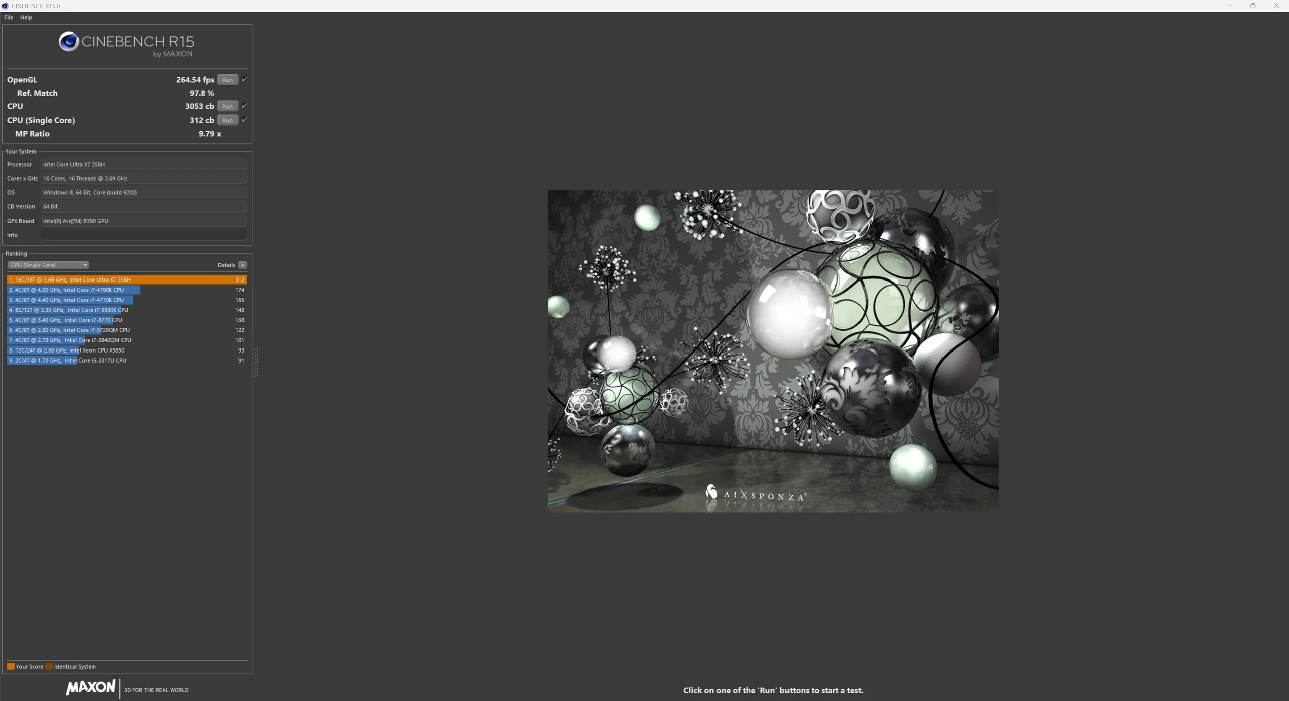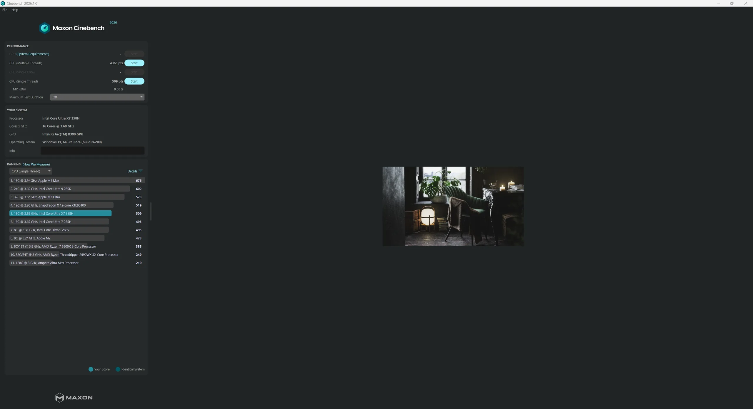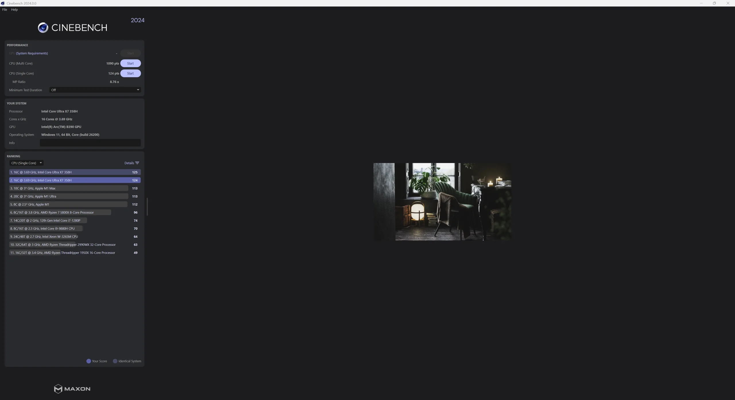En las pruebas comparativas sintéticas, el procesador demuestra que puede estar a la altura de los procesadores Ryzen AI 9 de AMD. Aplicaciones como el renderizado o la edición de vídeo se benefician del elevado número de núcleos y del aumento de la velocidad de reloj. En comparación con los modelos anteriores de la serie Mind, el aumento del rendimiento es por tanto especialmente significativo en cargas de trabajo altamente paralelizadas.