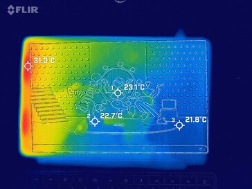 Con un consumo máximo de 11 vatios, la Duet 11 apenas se calienta durante su funcionamiento. Tanto la parte delantera como la trasera de la tableta alcanzaron un máximo de 39 °C en nuestras pruebas. Esto significa que la Lenovo Chromebook Duet 11 se mantiene cómoda incluso bajo carga. Sólo podría calentarse un poco bajo la luz directa del sol.