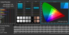 Medimos la cobertura del espacio de color por separado para ambas pantallas. Las diferencias son relativamente pequeñas, y ambas pantallas ofrecen resultados casi idénticos. Para el espacio de color sRGB, nuestras pruebas revelaron una cobertura ligeramente superior al 73%, que no es particularmente alta. Mientras tanto, sólo un poco más del 50 por ciento de los colores que se encuentran en los espacios de color AdobeRGB y P3 se puede mostrar. Esto no es lo suficientemente bueno para la foto semi-profesional o edición de vídeo. Más bien, la precisión del color sólo es suficiente para que el Uperfect sirva como extensión básica de escritorio para la edición de documentos o la navegación por Internet. Incluso las sesiones ocasionales de juego con una consola son viables, ya que para ello no es necesaria una gran precisión del color.