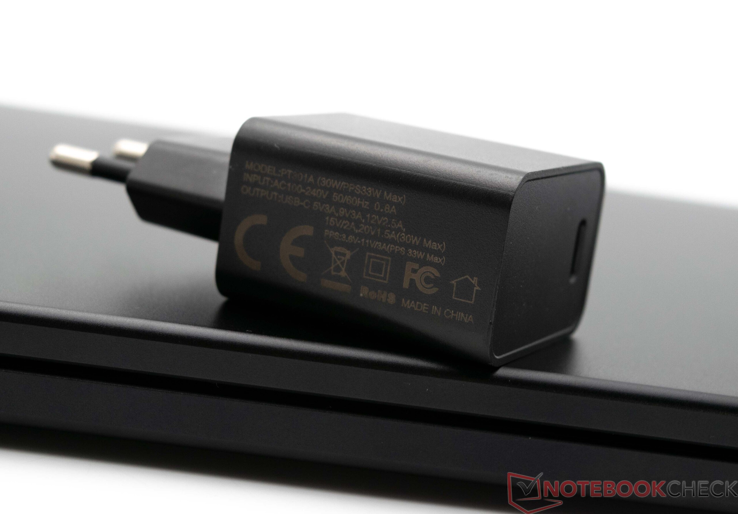 El brillo máximo de la pantalla solo se puede alcanzar si se conecta al adaptador de corriente incluido. Durante el funcionamiento con un solo cable por USB-C, observamos un brillo máximo de pantalla de sólo 160 cd/m².