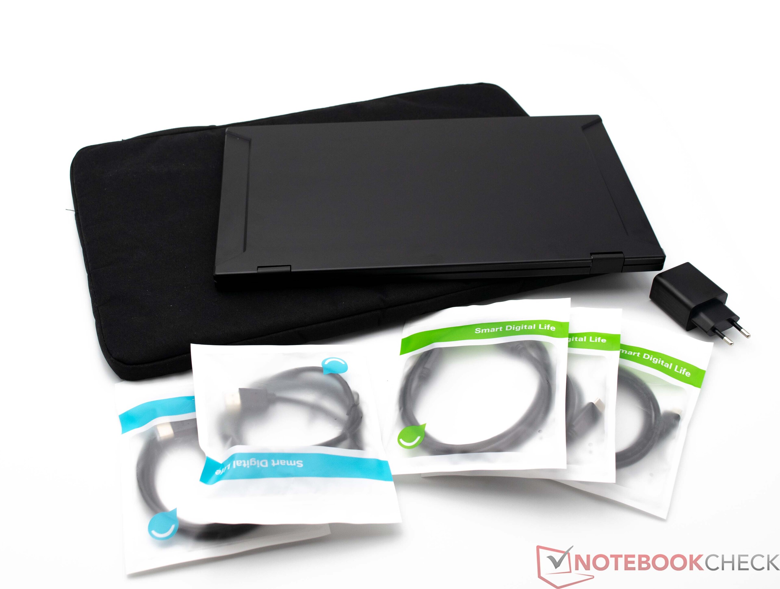 Para quienes deseen utilizar la pantalla en una oficina doméstica, el dispositivo también puede fijarse a un soporte VESA. Además, en el paquete de entrega se incluye una funda que protege el dispositivo durante el transporte y también sirve como bolsa para los cables necesarios.