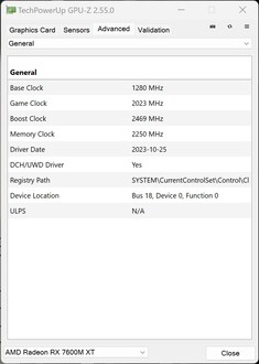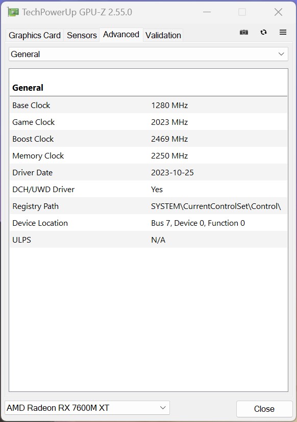 Velocidades de reloj de la GPD G1 AMD Radeon RX 7600M XT